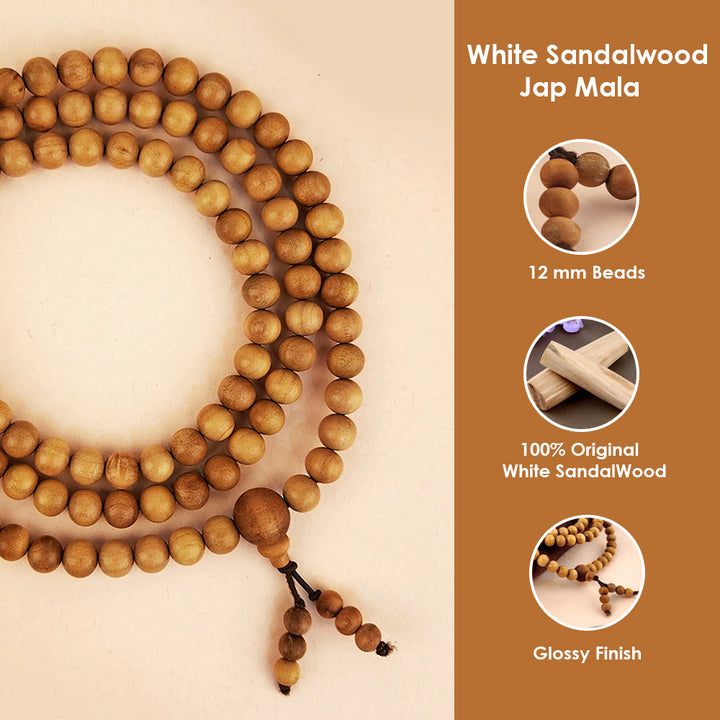 • Product Details: Material: Original White Sandalwood (Chandan) Jap Mala , Finish Type: Glossy
