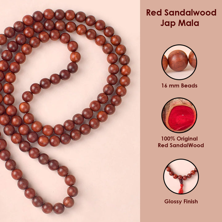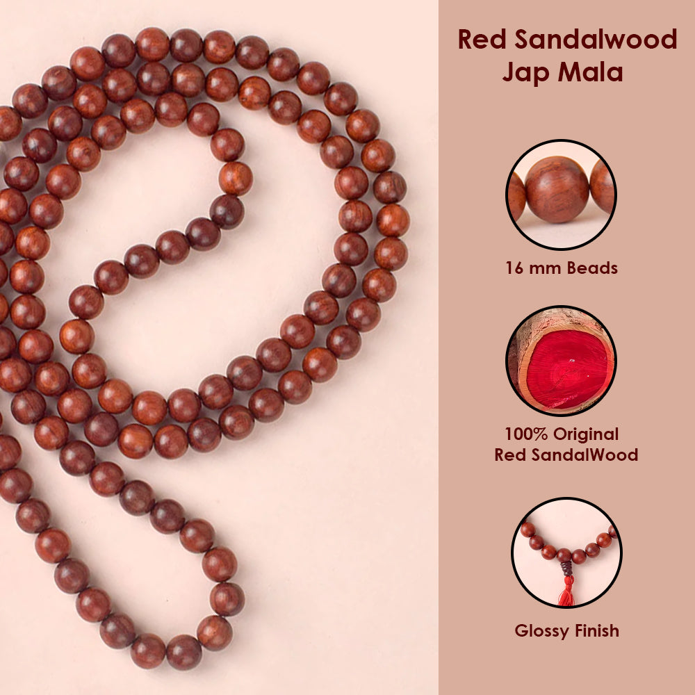 • Product Details: Material: Original Red Sandalwood (Chandan) Jap Mala (Andhra Pradesh), Finish Type: Glossy