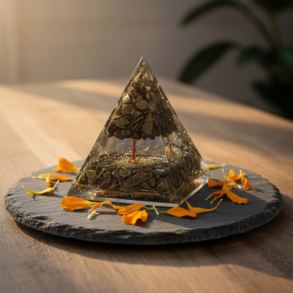 Pyrite Tree Pyramid | Pyrite Pyramid Tree | Wealth Pyramid Pyrite | Prosperity Crystal Pyramid | Money Magnet Pyramid | Spiritual Decor Pyramid | Vastu Pyrite Pyramid