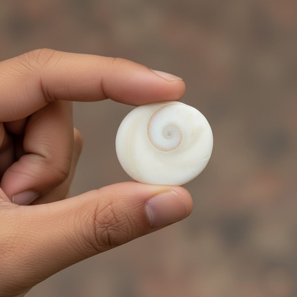 One side of the gomati chakra is elevated like a shell while the other side is flat with circular design like whirl which looks like a snake. Gomti chakra is a rare natural and spiritual product, a form of shell stone. Gomti chakra is also known as sudarshan chakra as it resembles the divine weapon of lord Krishna “ the sudarshan chakra. It is believed to bring luck.