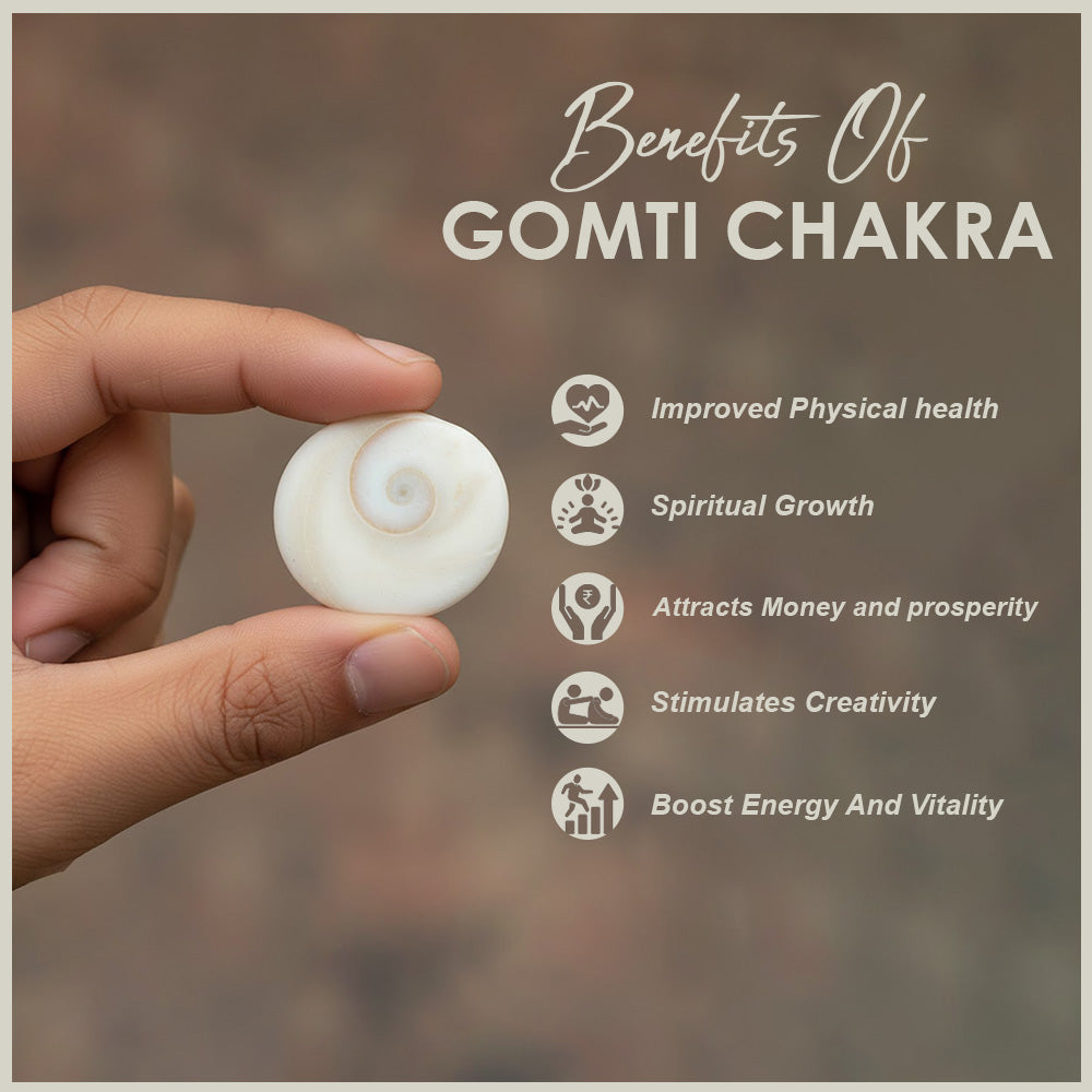 • Why we use Gomati: It is saying that using gomati chakra will not only stabilize your wealth but it will also protect you and your childred from evil eye.