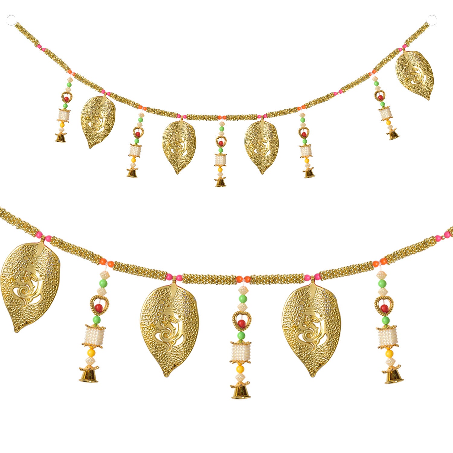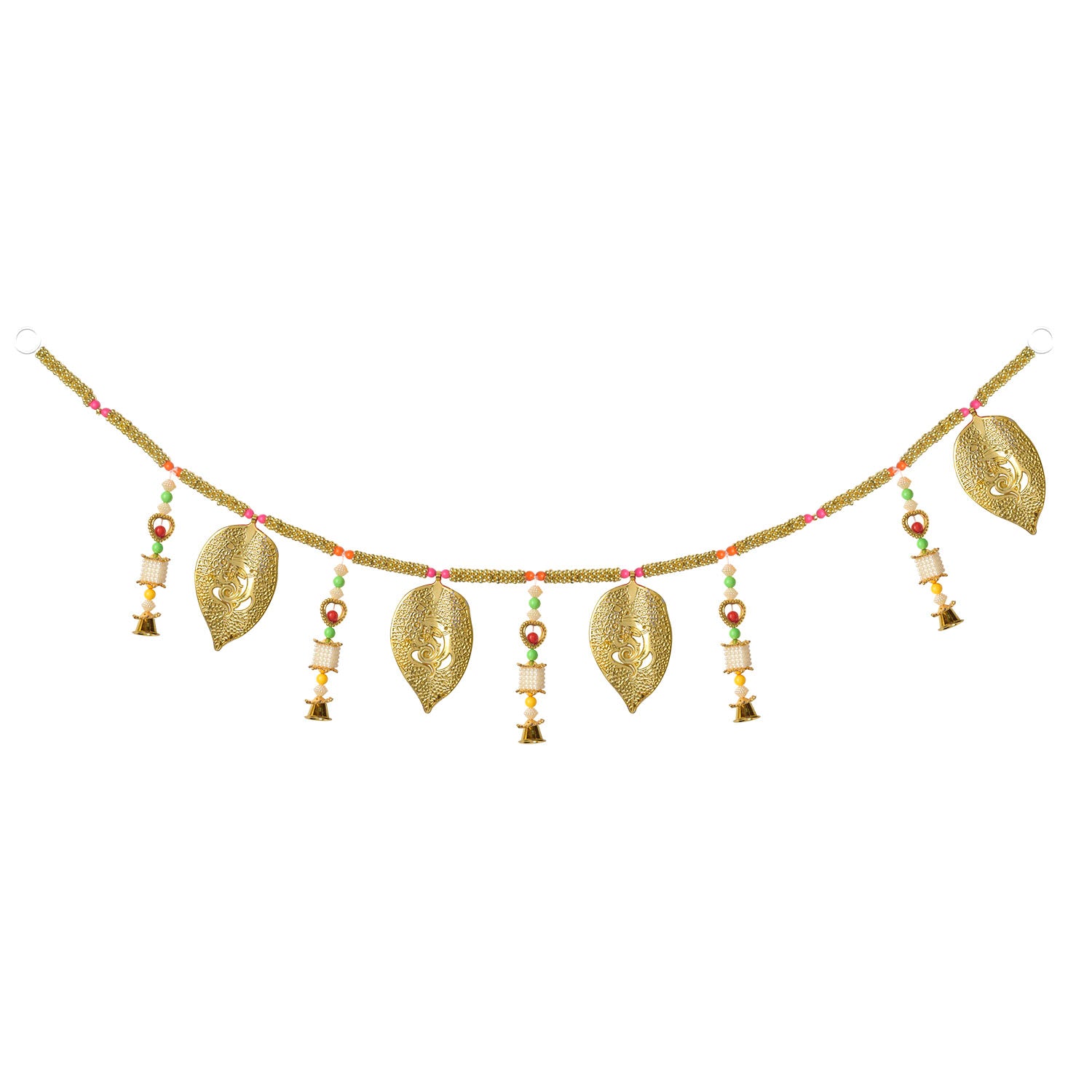 • Item Name:  Golden Toran with Ganesha Leaf and Bell Latkan Decor