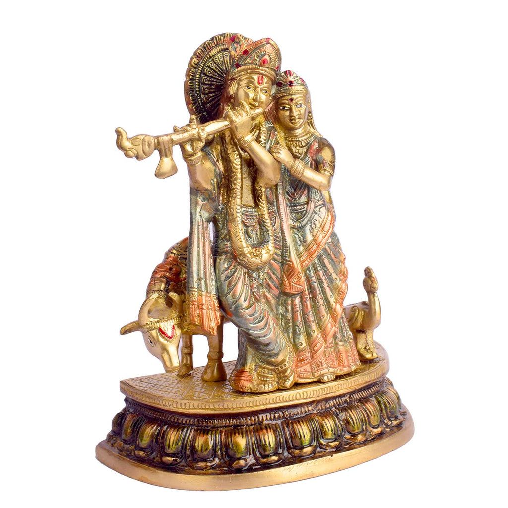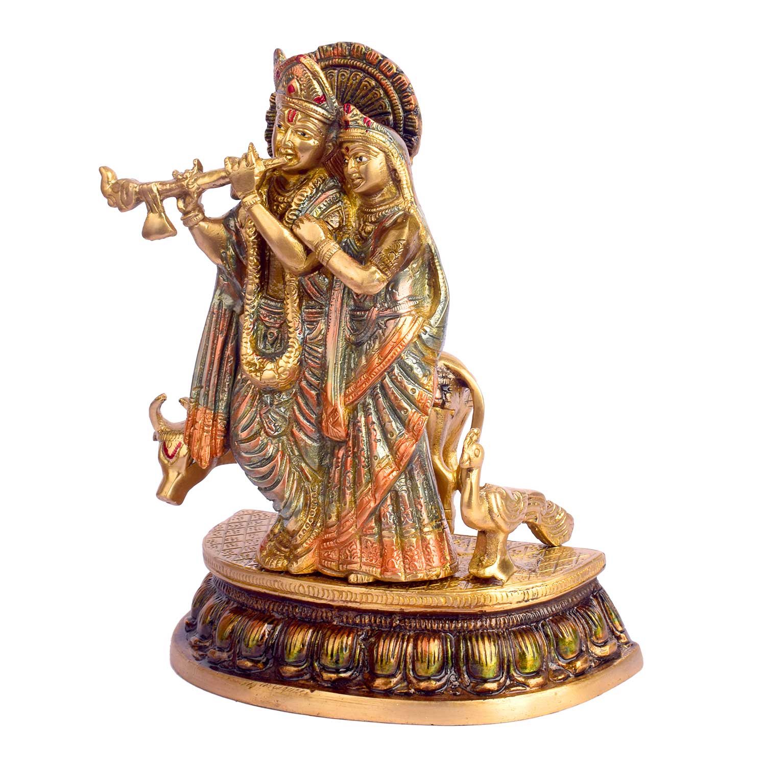 • Item Name: 9.3 Inch Radha and Krishna with Cow Brass Statue