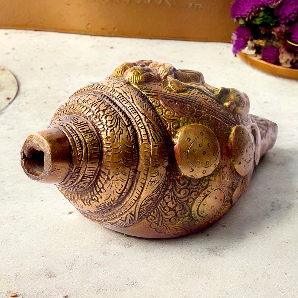 Brass Shankh with Divine Ca...