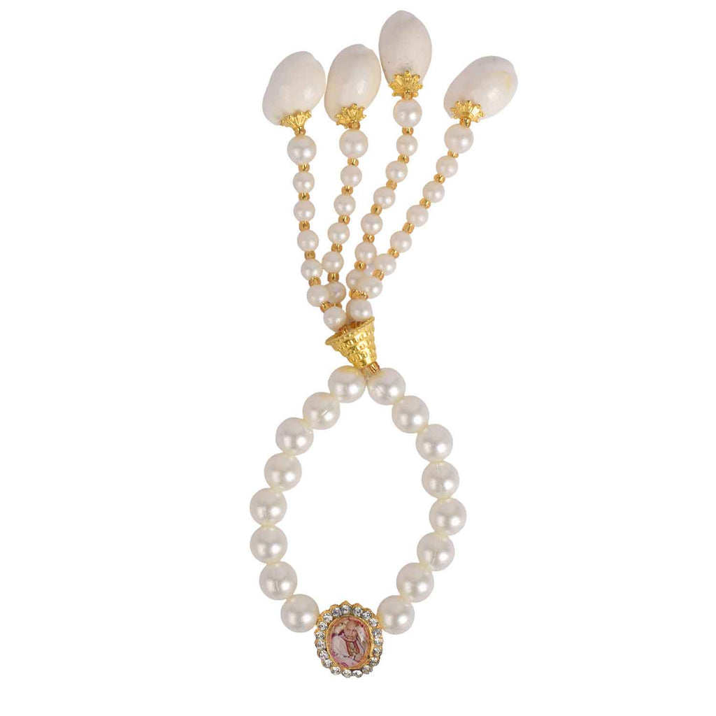 Elegant Guruji Swaroop Bracelet – White Pearls with Latkan