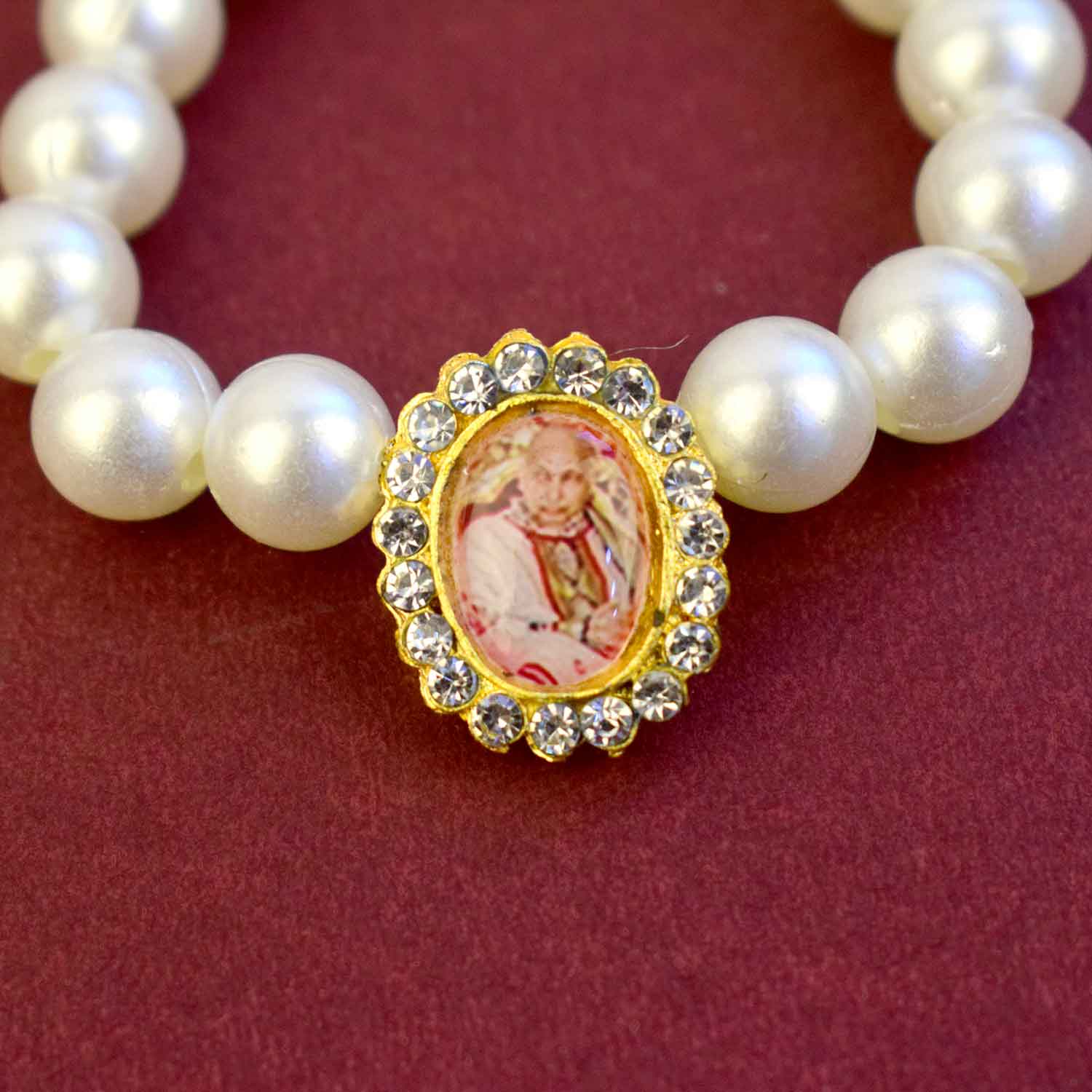 Buy Online | Guruji Swaroop Bracelet – White Pearls with Latkan | Satvikworld.com
