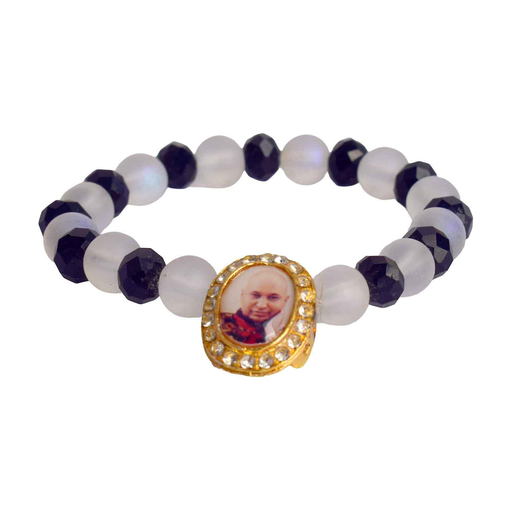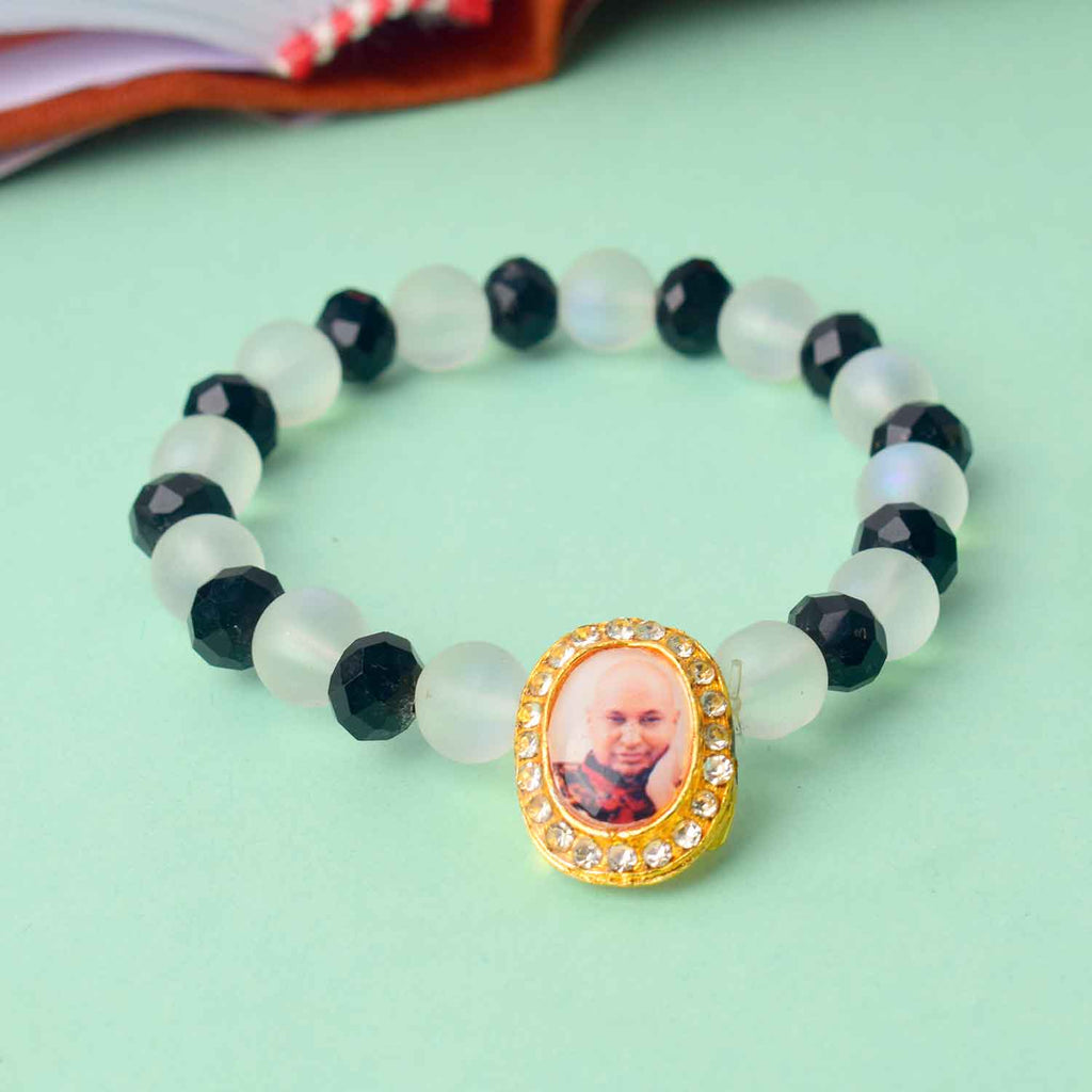 • Item Name: Guruji Swaroop Bracelet – Elegant White & Black Beads