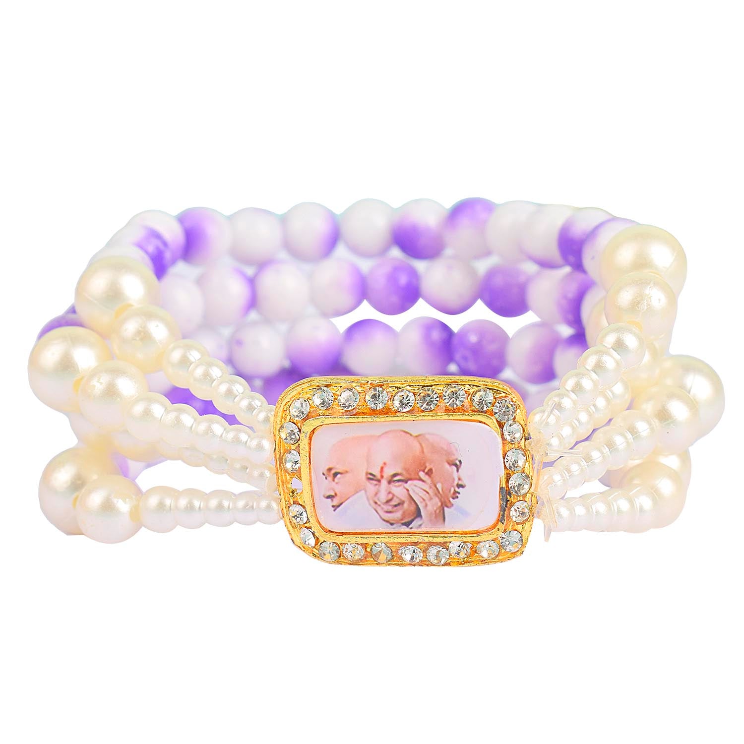 Buy Online | White & Lilac White Pearl Guruji Swaroop Bracelet | satvikworld.com – Satvikworld.com