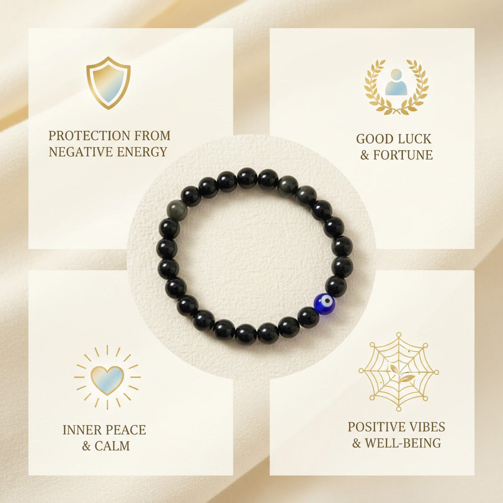 Protection + Wealth Balance – Black Obsidian with Evil Eye shields against negative energies, while Golden Pyrite attracts prosperity and abundance.