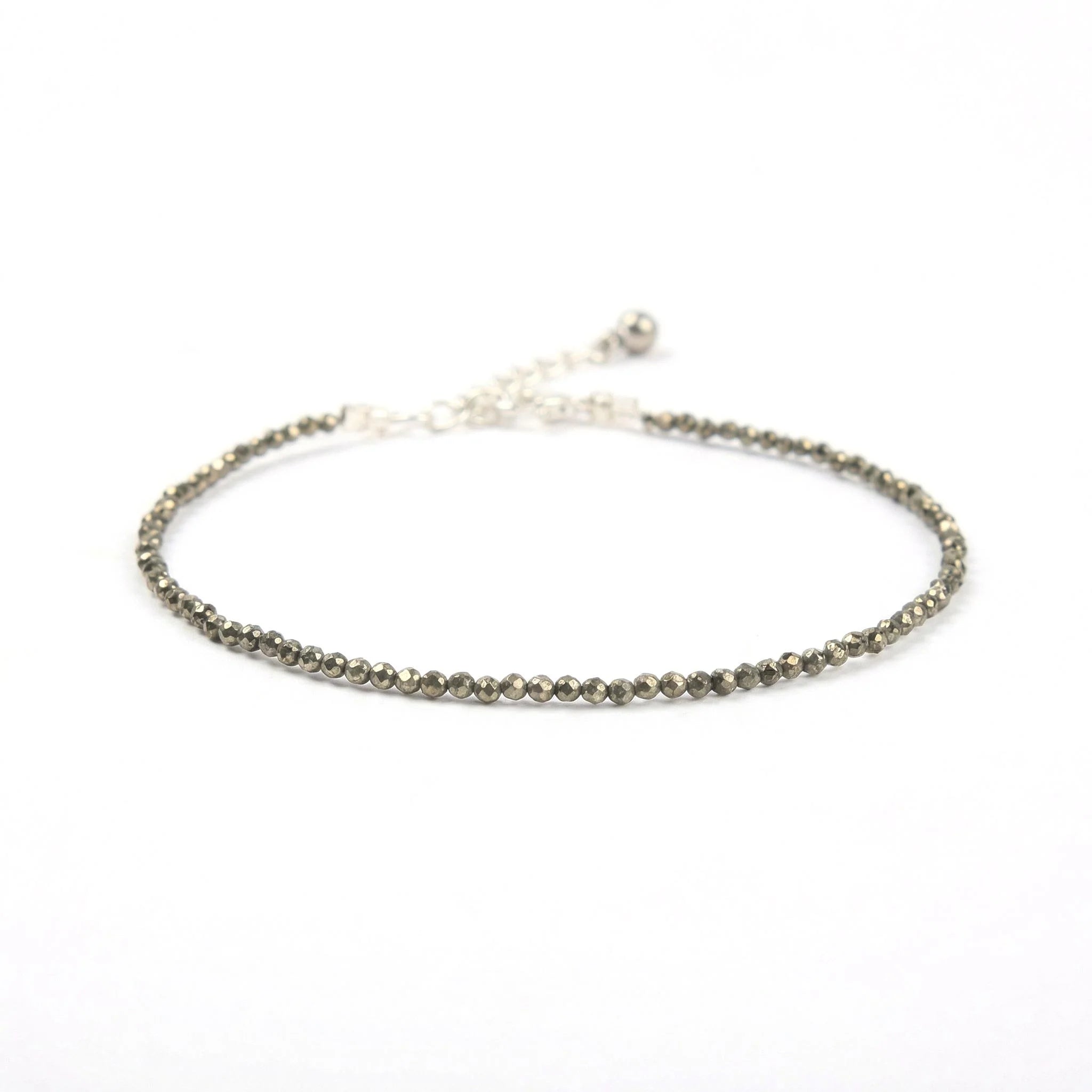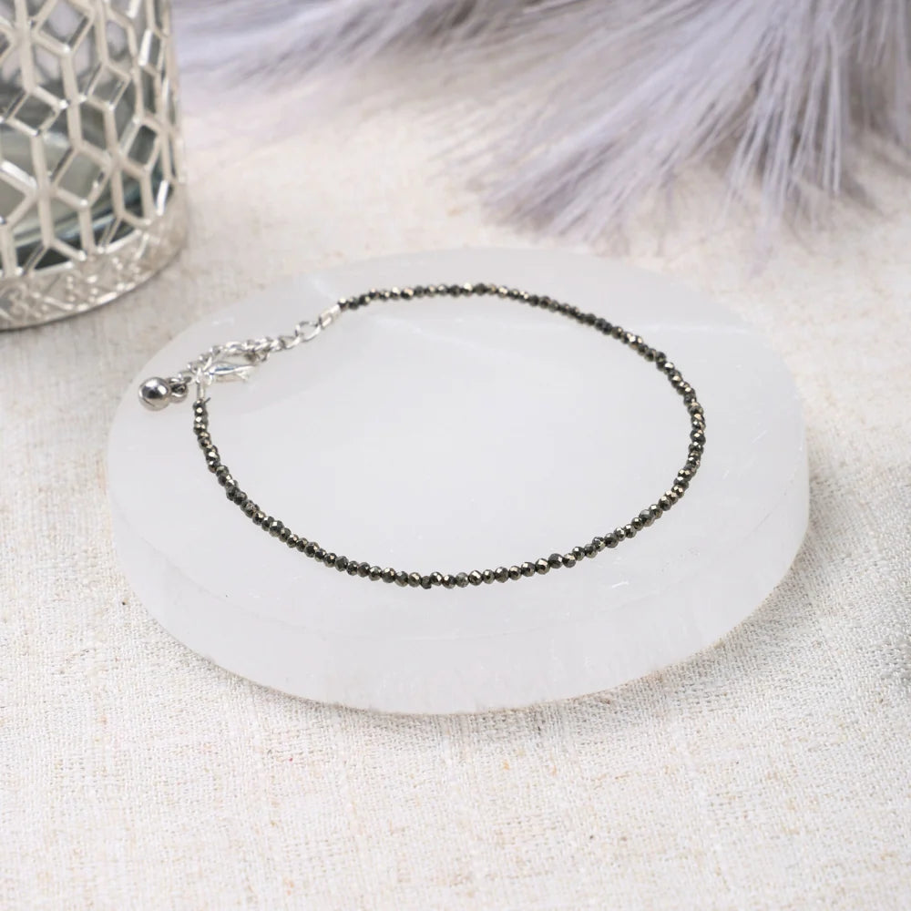• Design: Smooth Round 8mm Beads Bracelet, Beaded Anklet with Natural Pyrite Gemstones