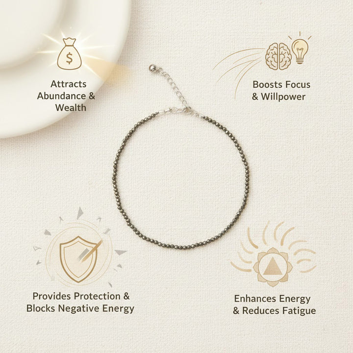 • Wear the Pyrite Anklet on your ankle to attract prosperity and protection