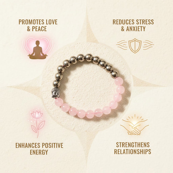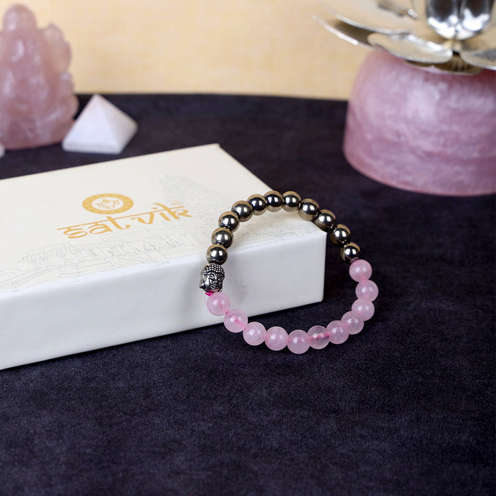 Buy Rose Quartz Buddha Pyrite Bracelet & Selenite Zodiac Combo | Satvikworld.com