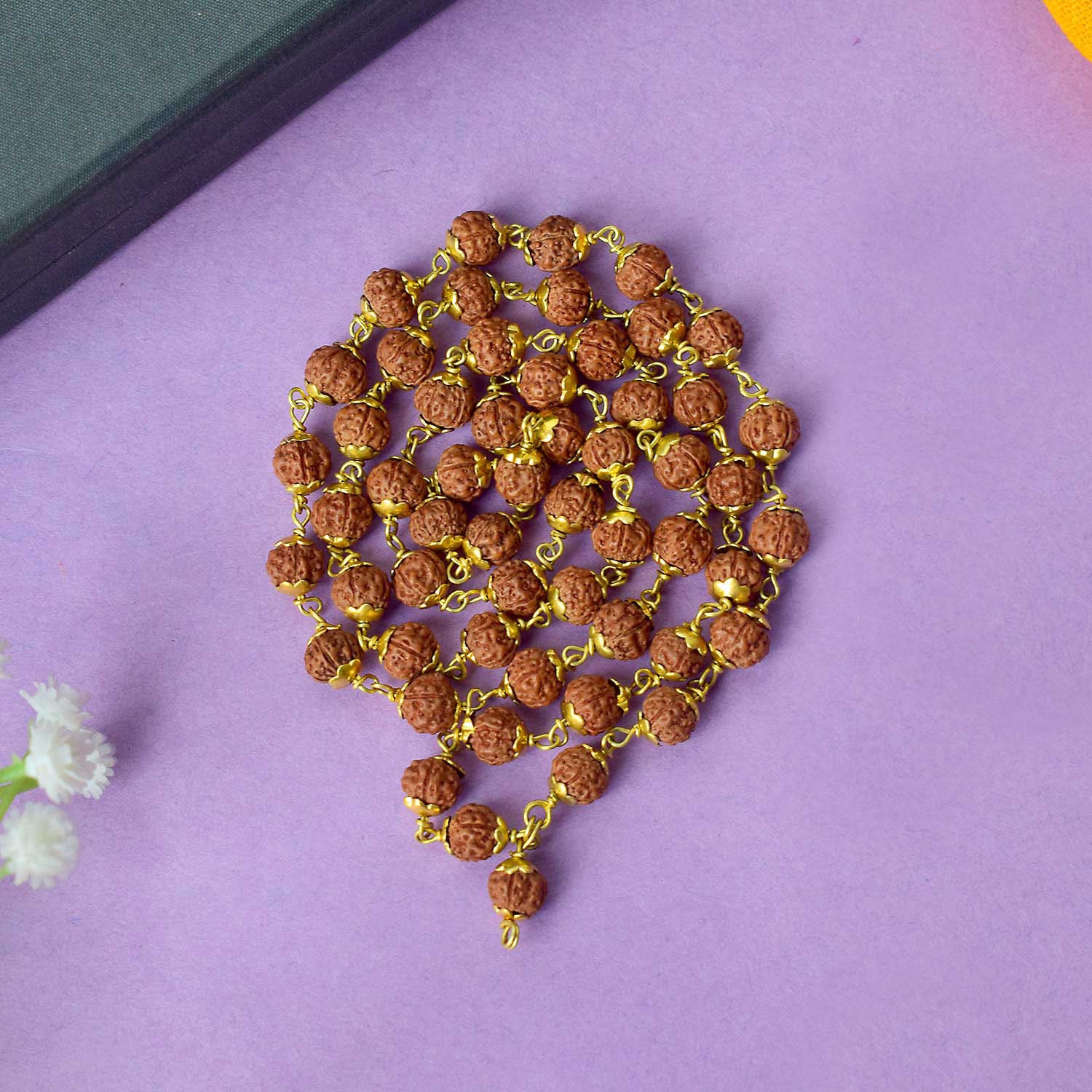 • Material:  Original 5 Face Natural Rudraksha Mala with Brass Capping Beads