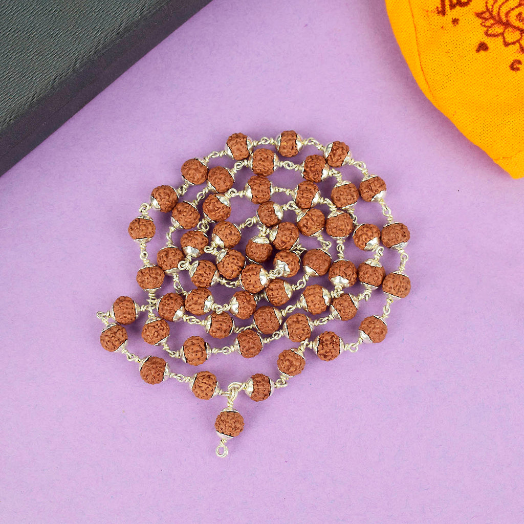 • Material : Original 5 Mukhi Himalya Rudraksha Mala with silver Capping