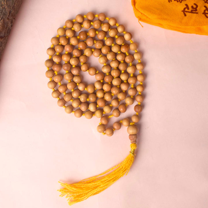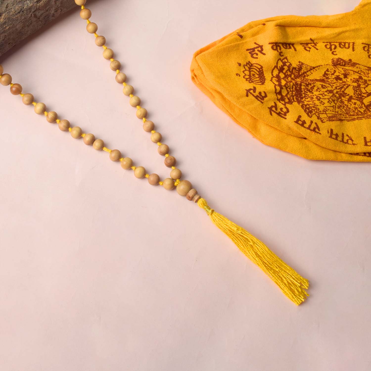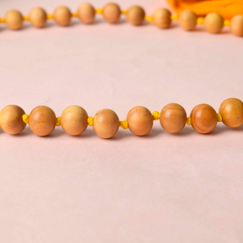 Certified 8-9mm 100% Original Authentic Mysore White Sandalwood (Chandan) yellow thread Jap Mala