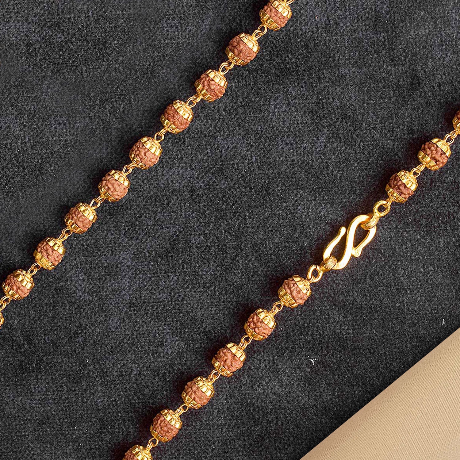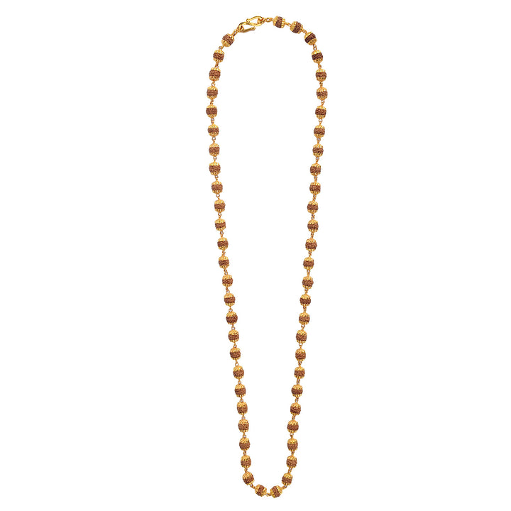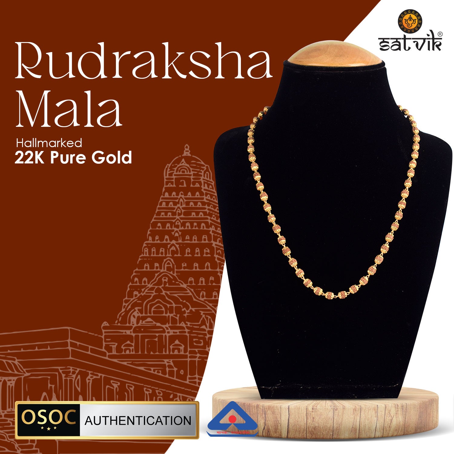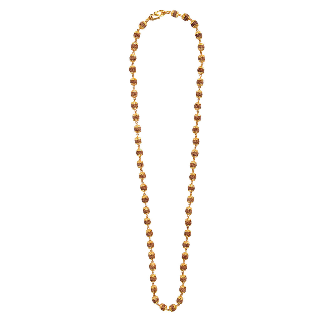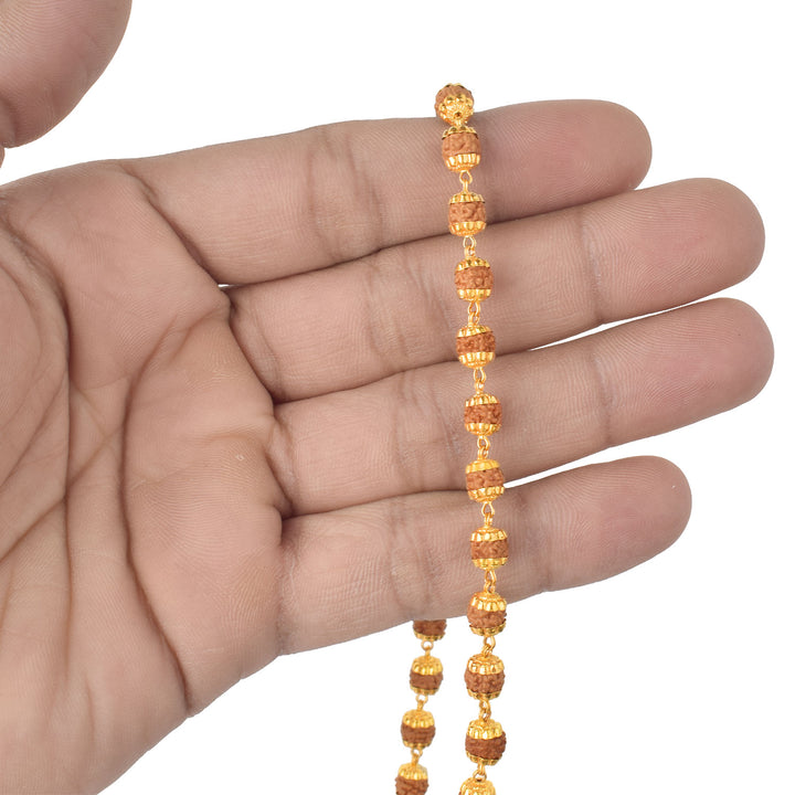 Buy Certified Panchmukhi Rudraksha Mala-22K Gold Cap | Satvikworld.com