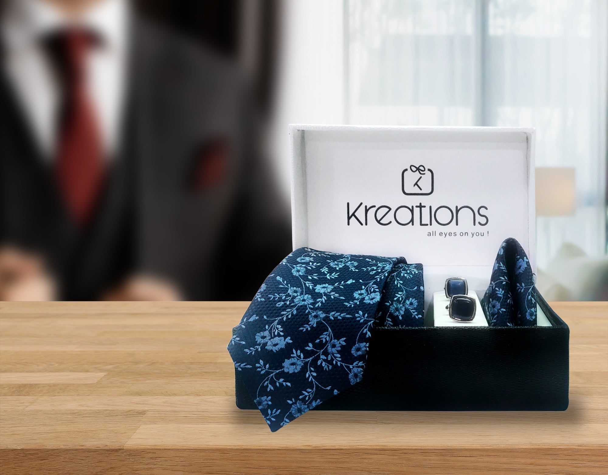 Rakhi with Blue Embroidered Tie Gift Combo Set – Satvikworld.com