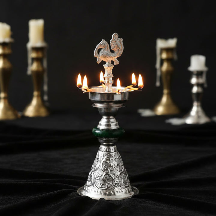 Silver Kerala Diya Samai – Traditional Standing Lamp | Satvikworld.com