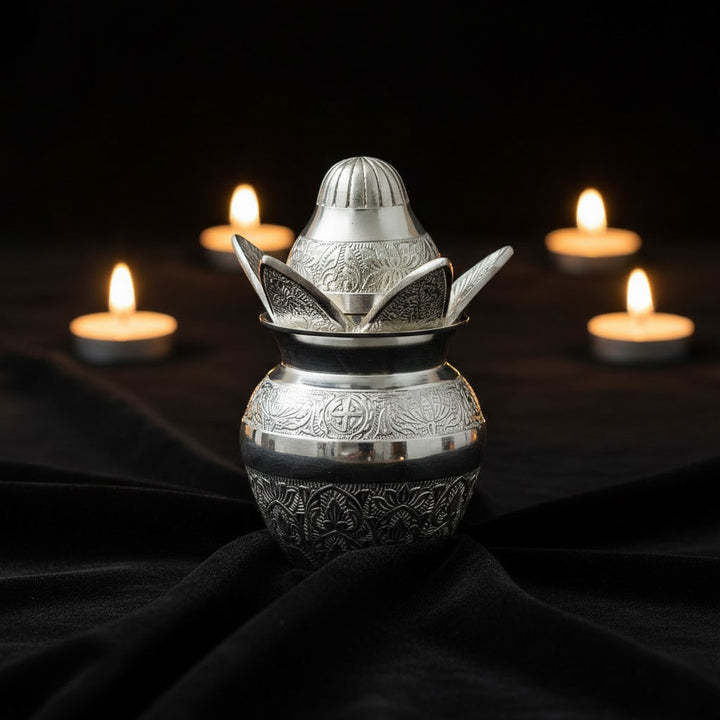 Silver Plated Pooja Kalash – Traditional Metal Vessel for Worship | Satvikworld.com
