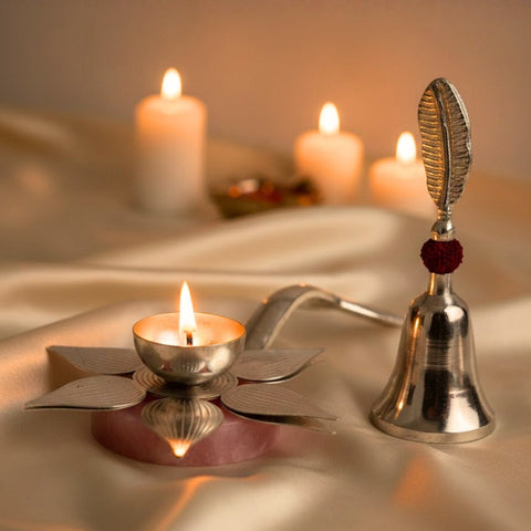 Silver Lotus Diya with Bell...