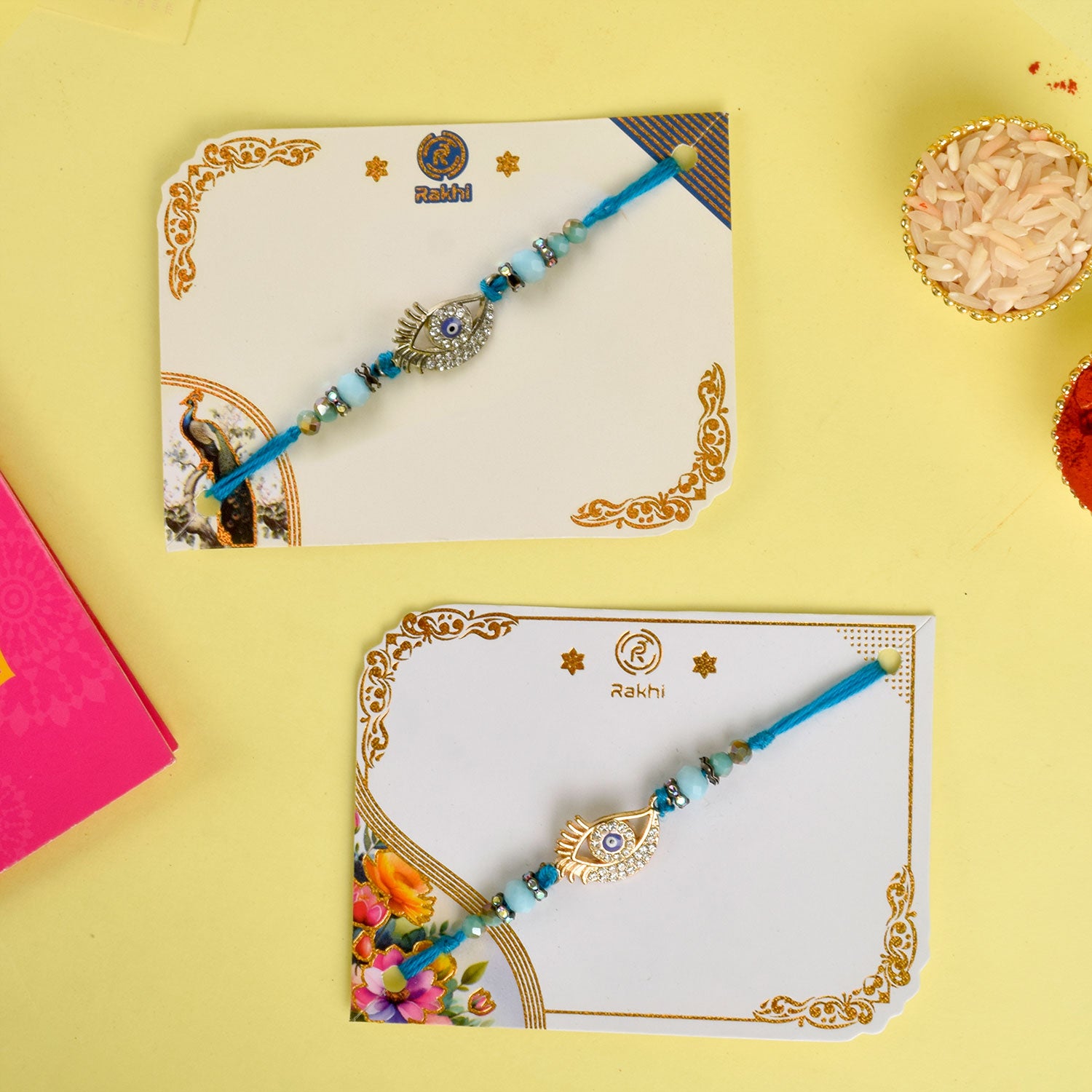 About Product: Strengthen the sacred bond of sibling love with this Set of Two Rakhis, beautifully designed for your beloved brothers. Each rakhi features traditional threadwork and intricate detailing, making them a perfect blend of spirituality and festivity.