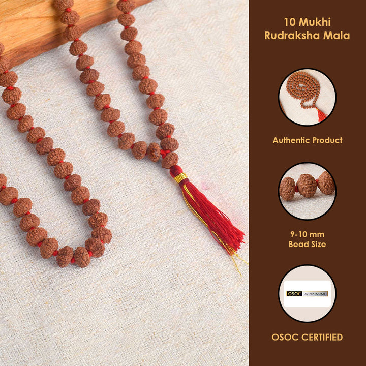 Buy 10 Mukhi Rudraksha Mala for Divine Protection | Satvikworld.com