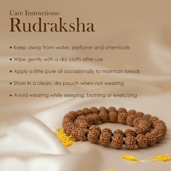 Wear it around your neck or use it during mantra chanting by moving bead-by-bead while reciting your chosen mantra. Clean regularly with a soft cloth and energize it under sunlight or by chanting the Beej Mantra.