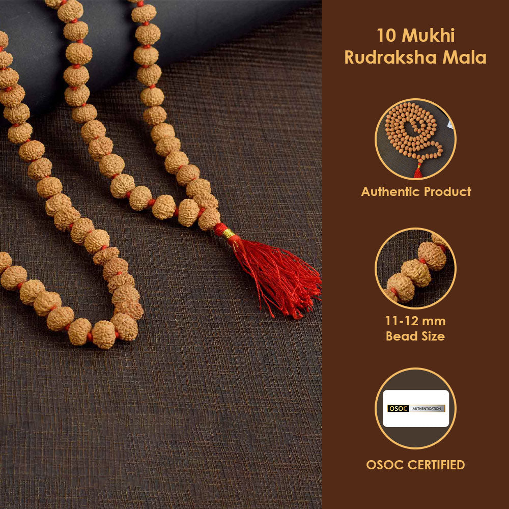 Buy 10 Mukhi Rudraksha Mala for Divine Protection | Satvikworld.com