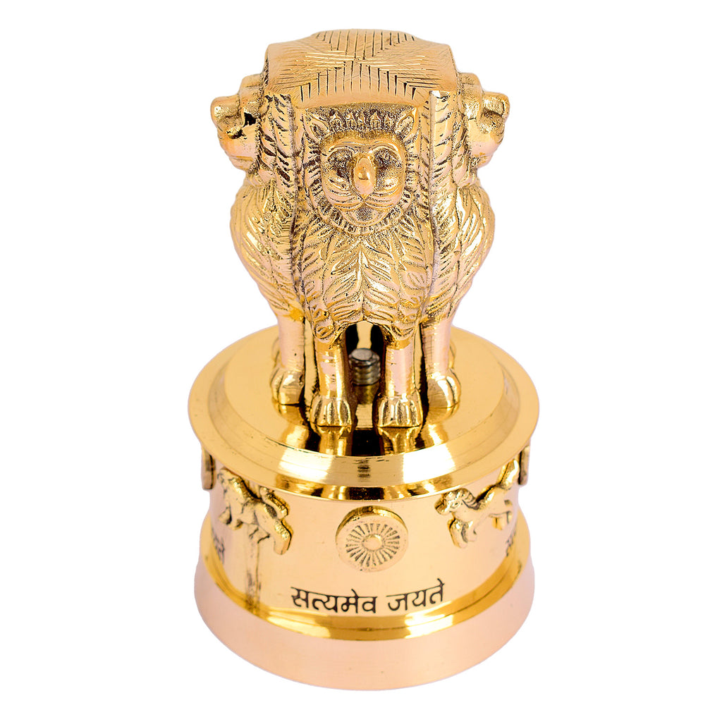 5 Inch Brass Ashoka Pillar Showpiece (National Emblem Decor)