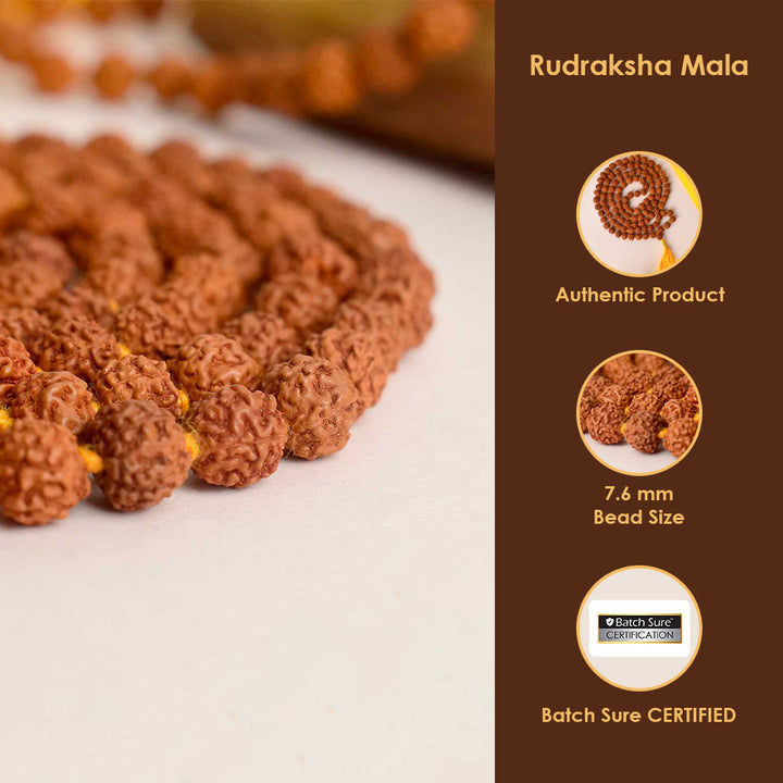 • Material : Made from High Quality Rudraksha Mala – Natural Brown Beads for Meditation & Healing