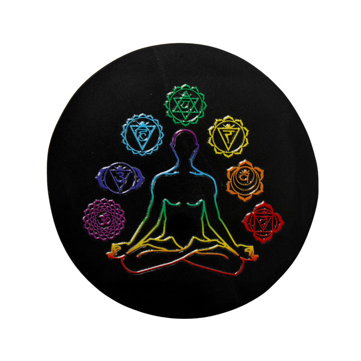 • Design: Seven Chakra Symbols Engraved on Polished Obsidian Plate