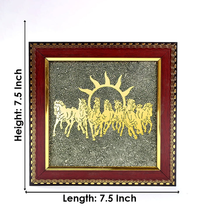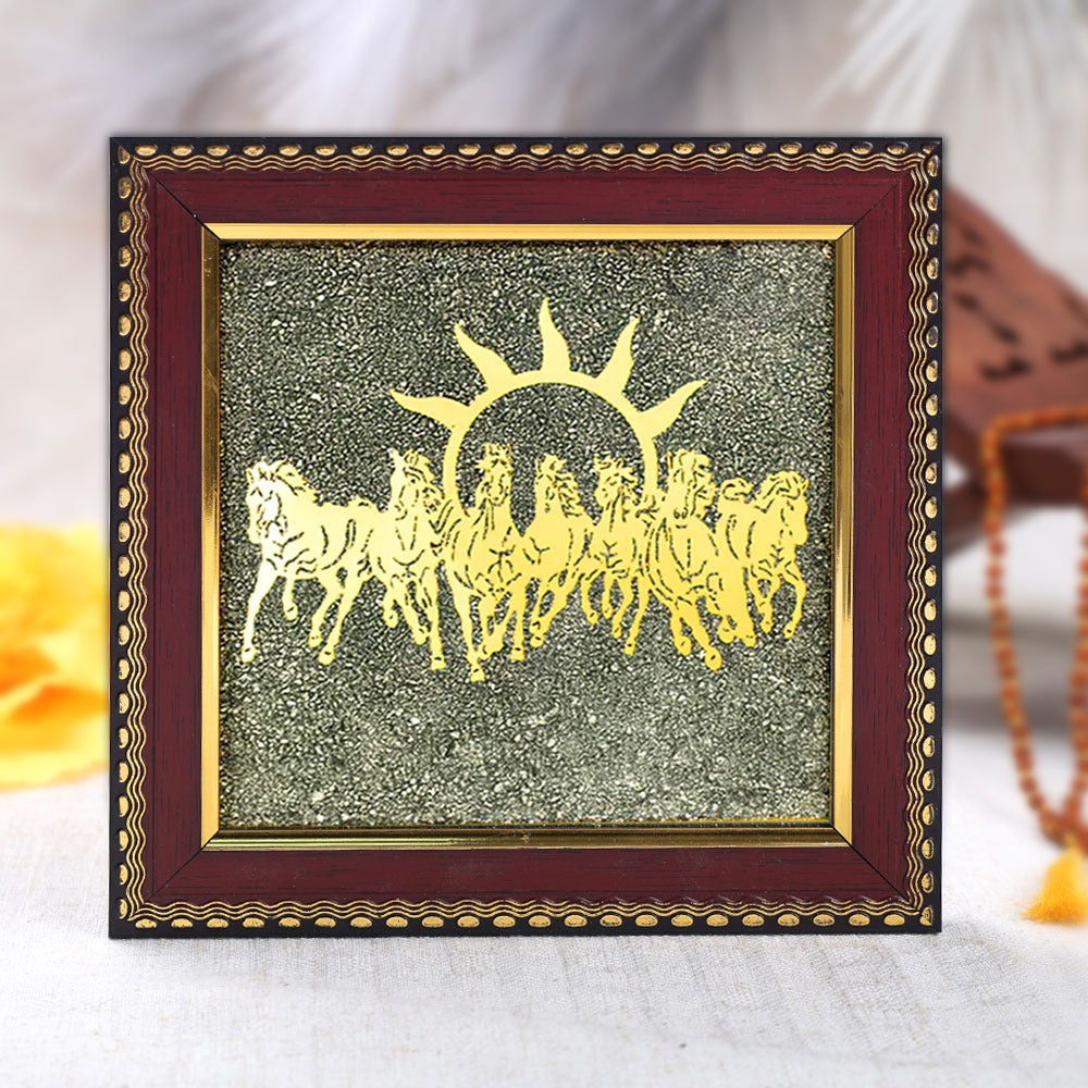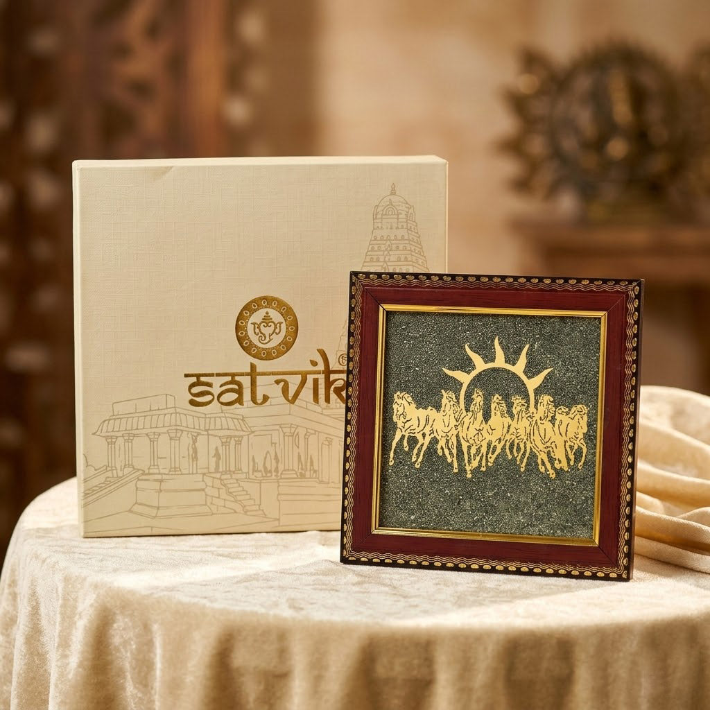 7 Horses Pyrite Frame | Raw Pyrite Crystal Frame | Wealth Attraction Decor | Pyrite Vastu Frame | Seven Horses Vastu Decor | Prosperity Crystal Frame