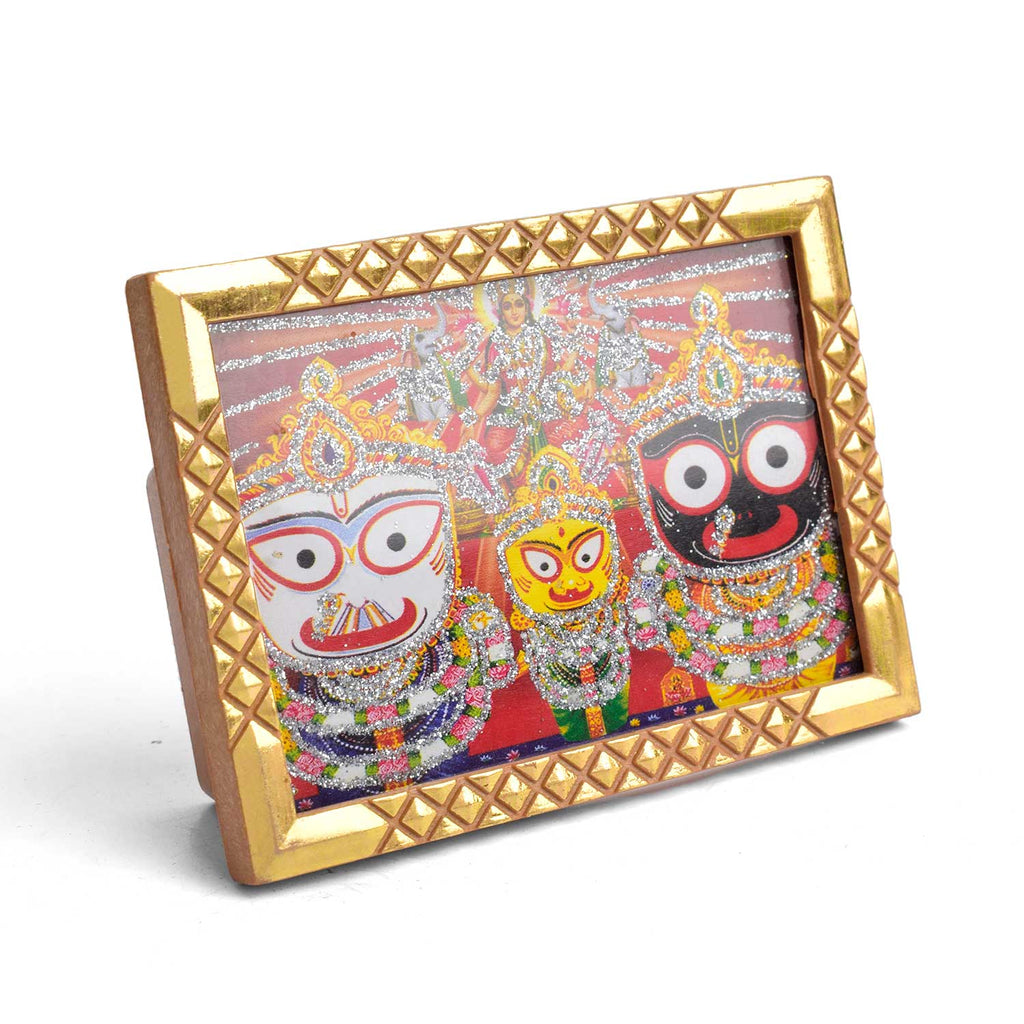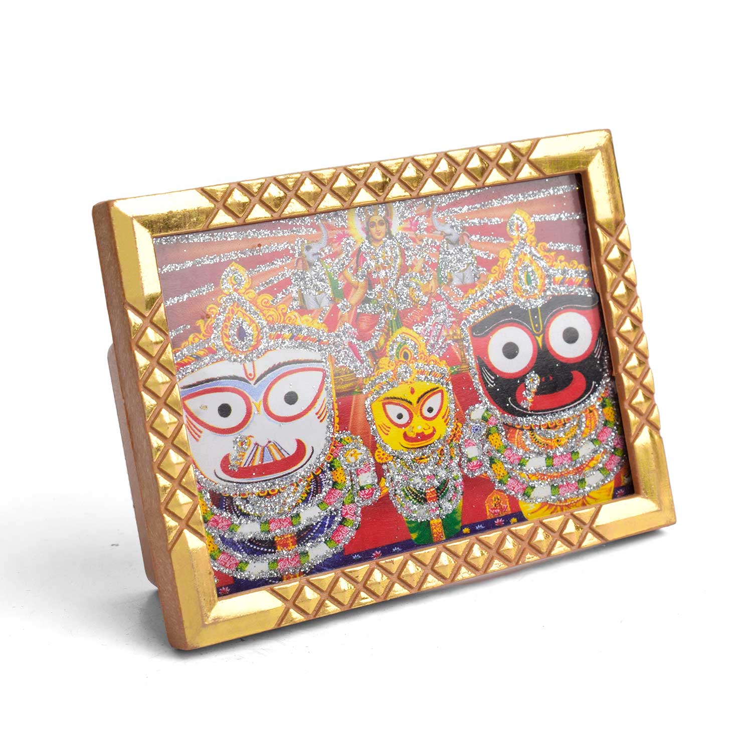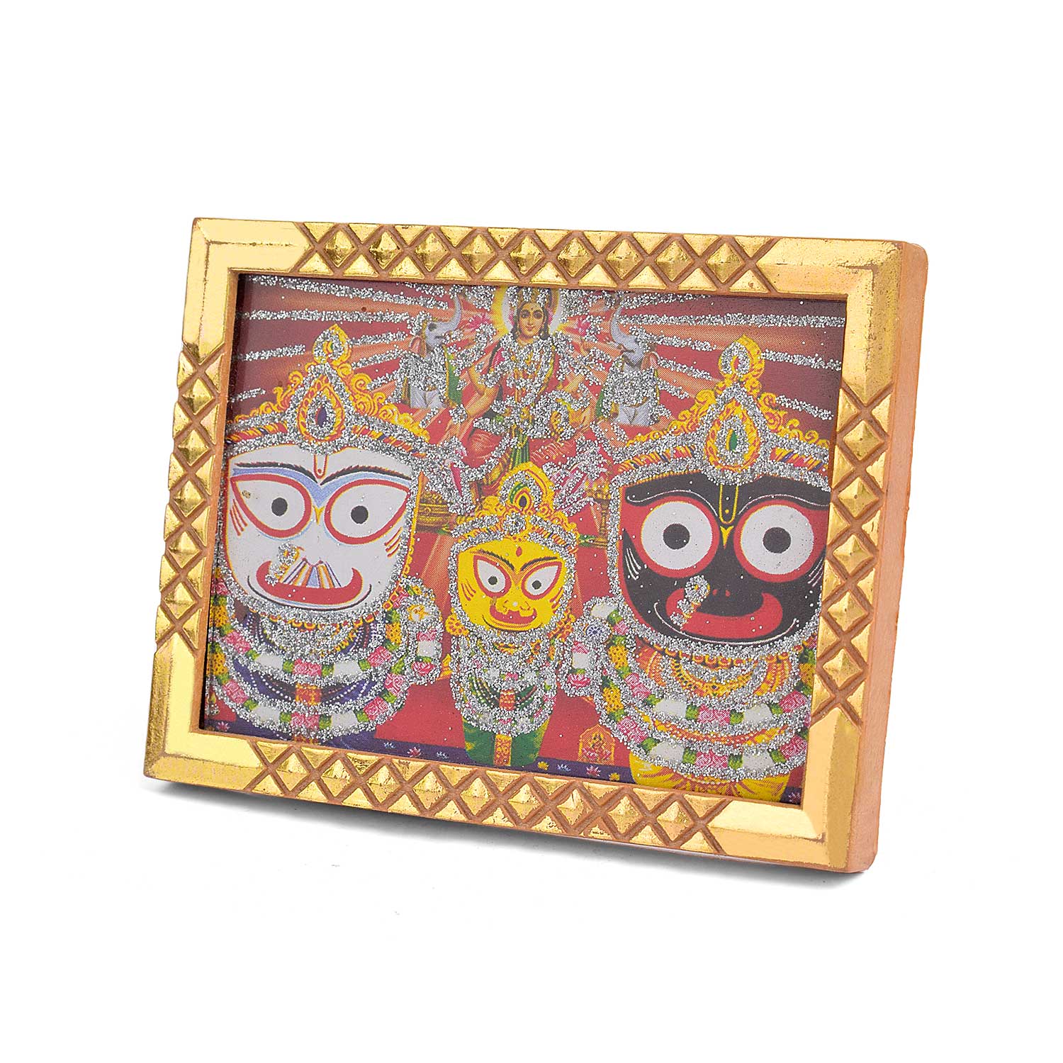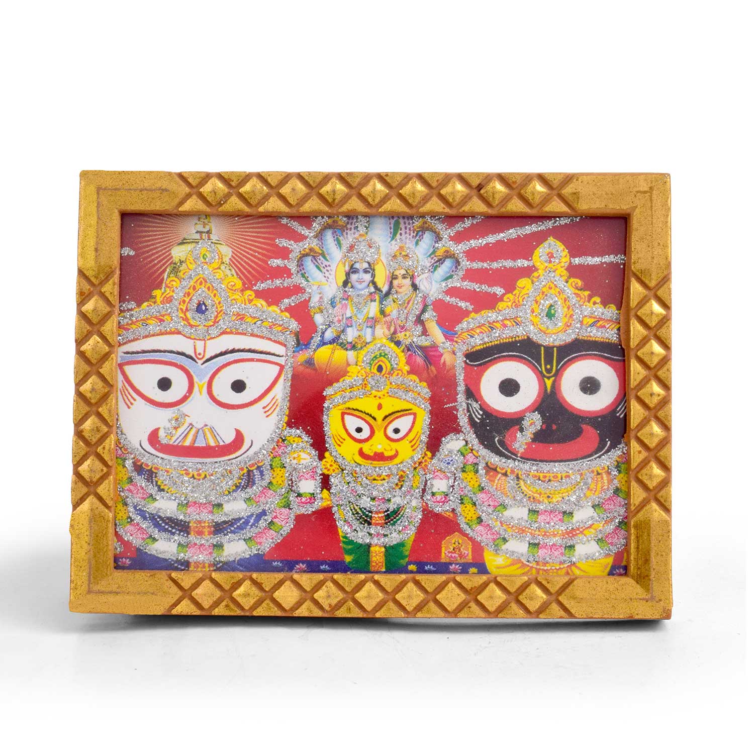 About the Product: Elevate your spiritual journey with the Lord Jagannath frame Car Dashboard Idol – Big. Designed with vibrant colors and divine imagery of Lord Jagannath, Balabhadra, and Subhadra, this wooden frame idol brings the sacred aura of Puri right into your vehicle or sacred space. The larger size makes it more prominent while retaining its travel-friendly build, making it ideal for your dashboard, home altar, or office.