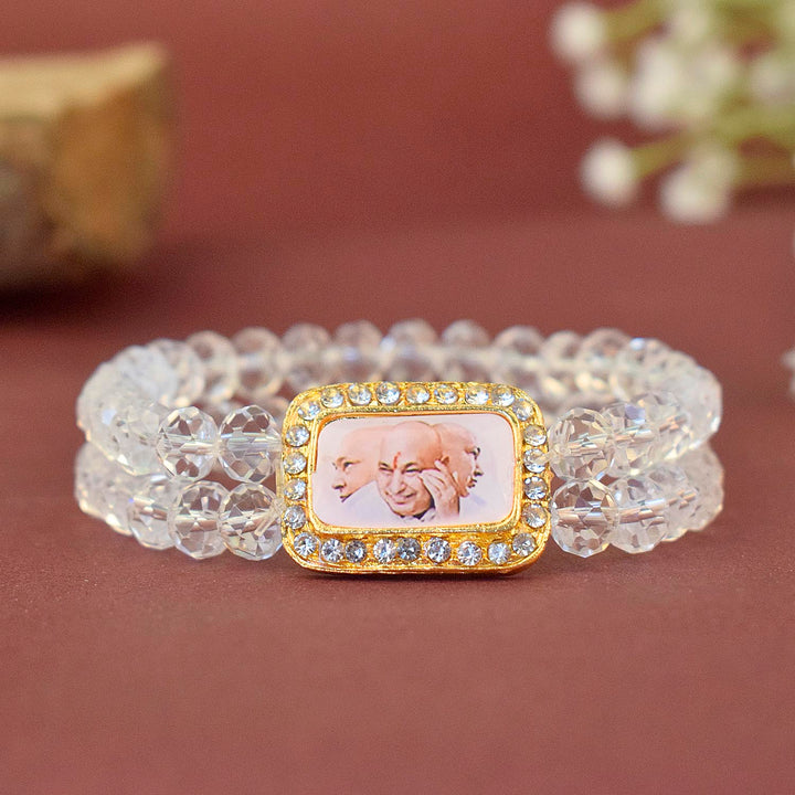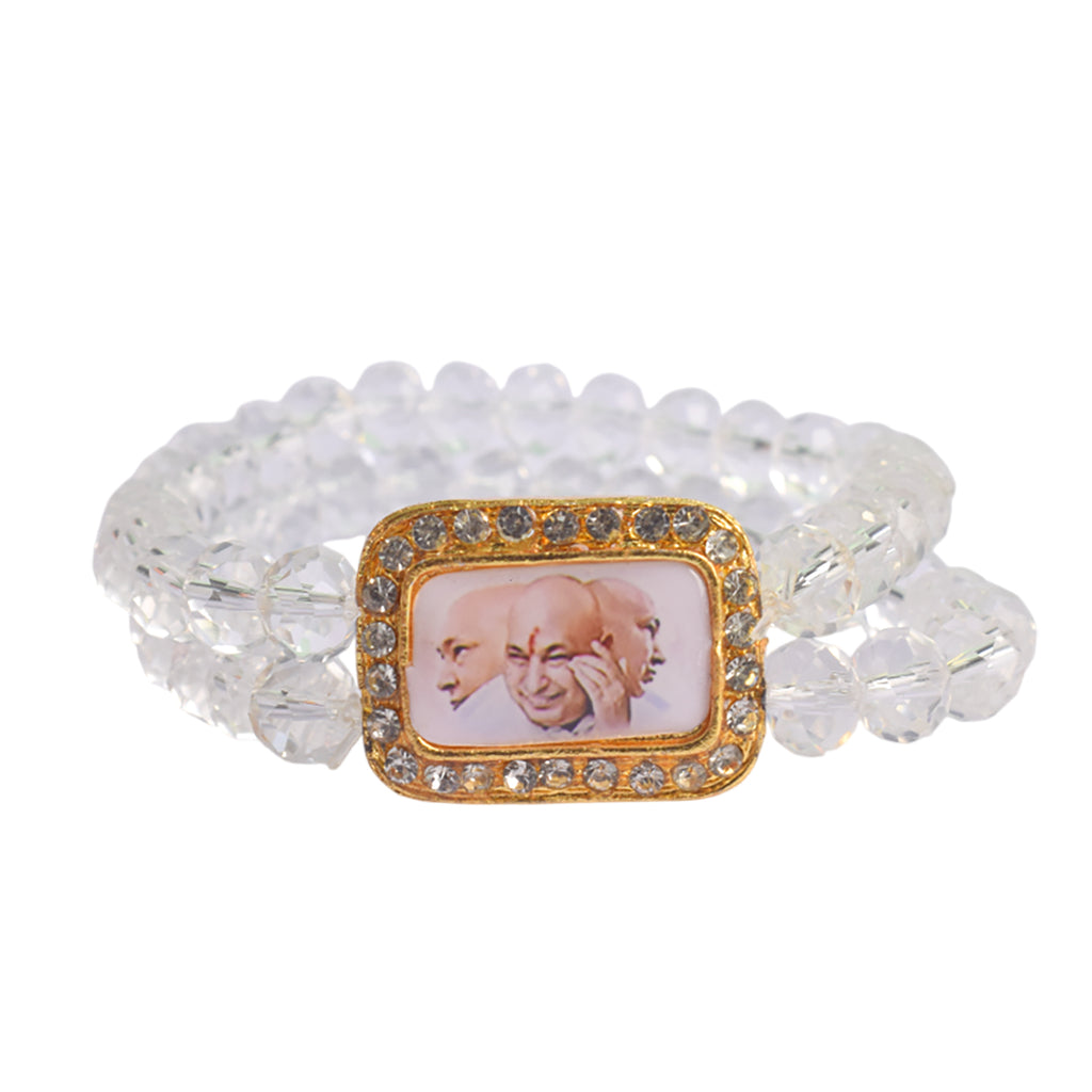 Clear Shiny Beads Single Layer Guruji Swaroop Bracelet