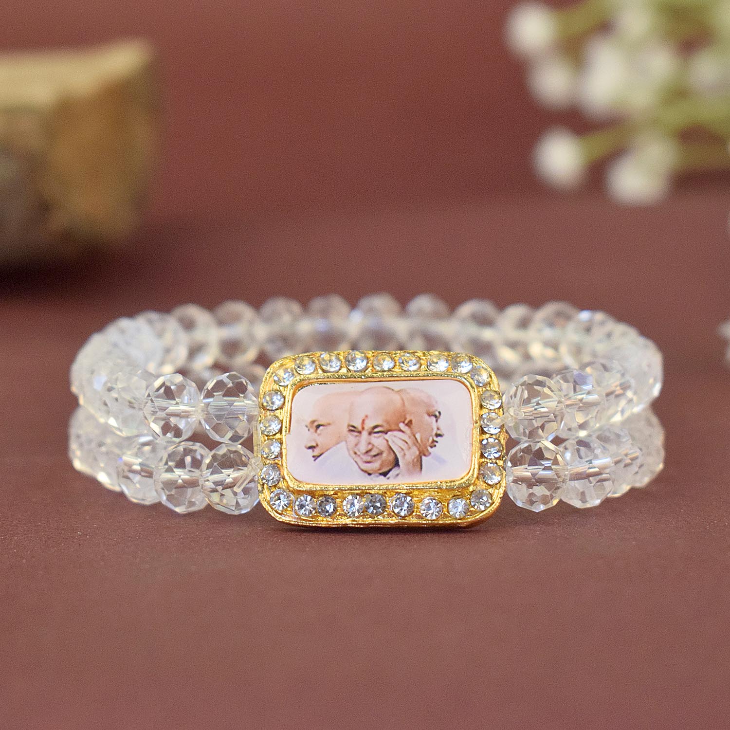 Buy Online | Clear Shiny Single Layer Guruji Swaroop Bracelet | satvikworld.com – Satvikworld.com