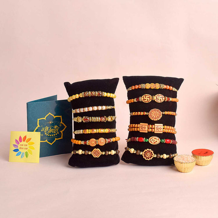 Remember, Rakhi isn't exclusively for brothers; it's also a moment to celebrate the bond between sisters-in-law (bhabhis) and brothers. Explore a delightful selection of Lumba Rakhis and Bhaiya Bhabhi Rakhis that symbolize the love and affection shared by the couple. These Rakhis are often available in sets, fostering a sense of unity and togetherness in the celebration.