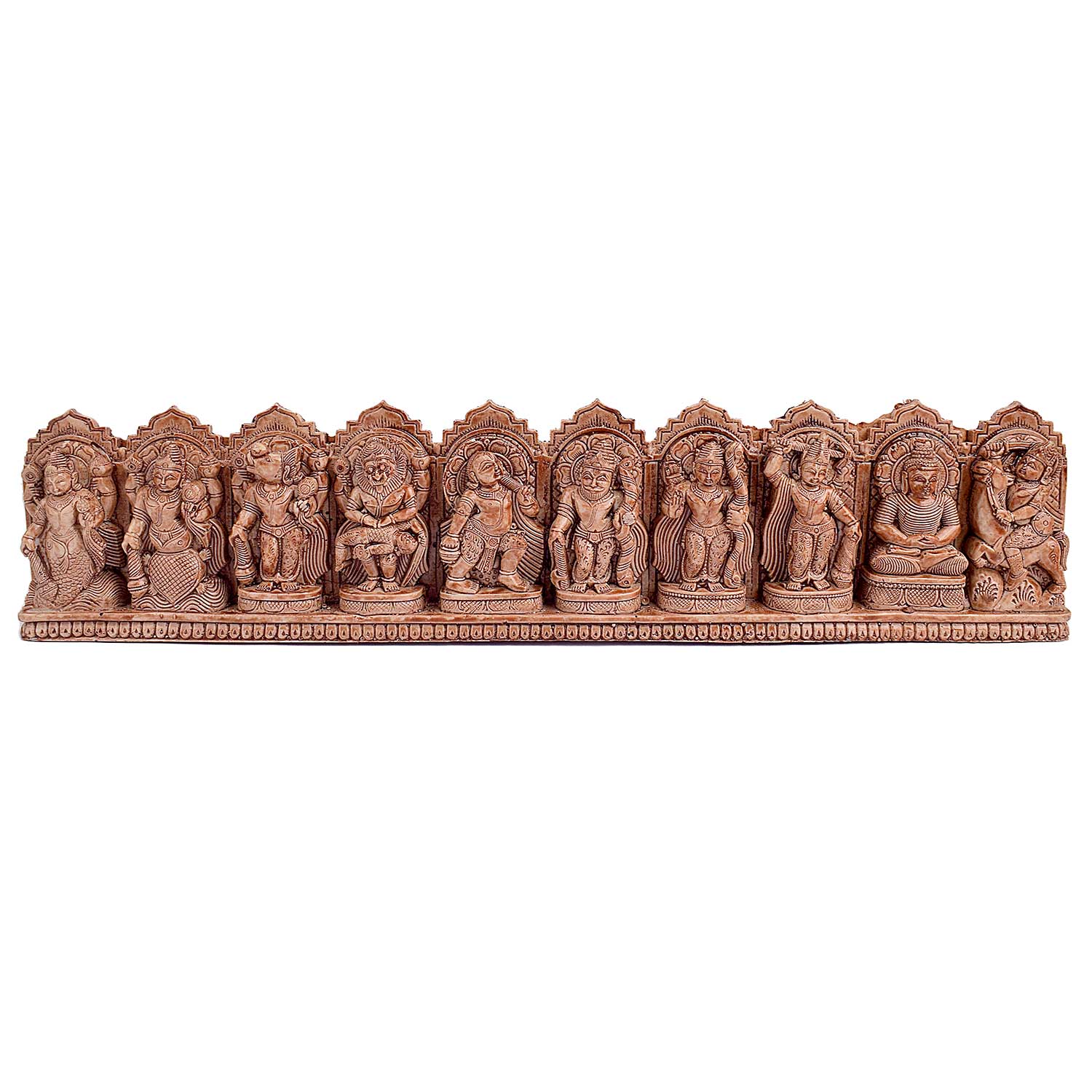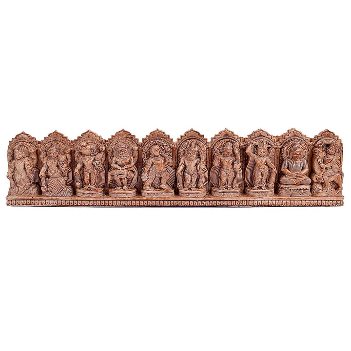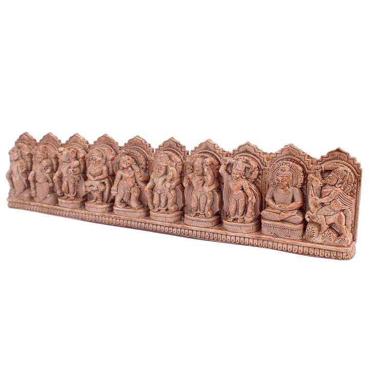 Item Name: Dasavatharam Wall Decor. Lord Vishnu Avatars In Wood Carving