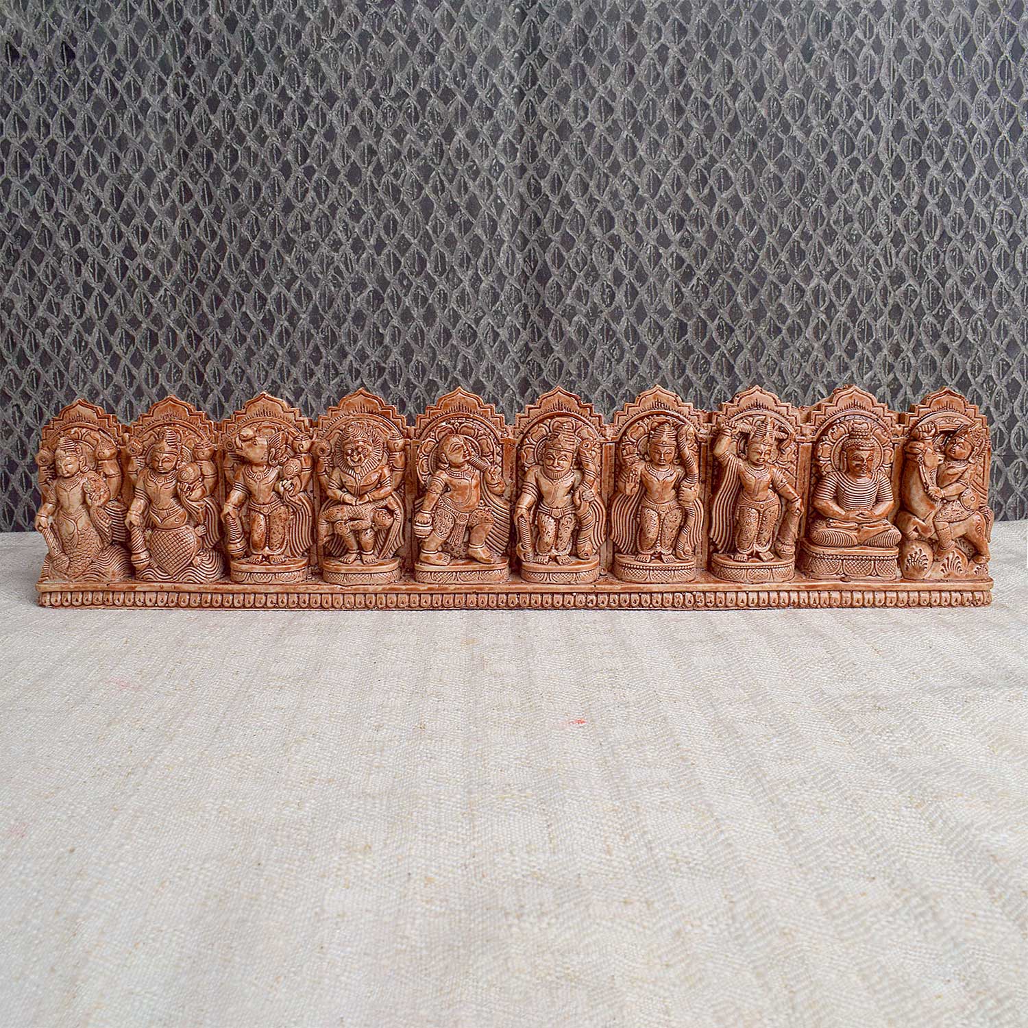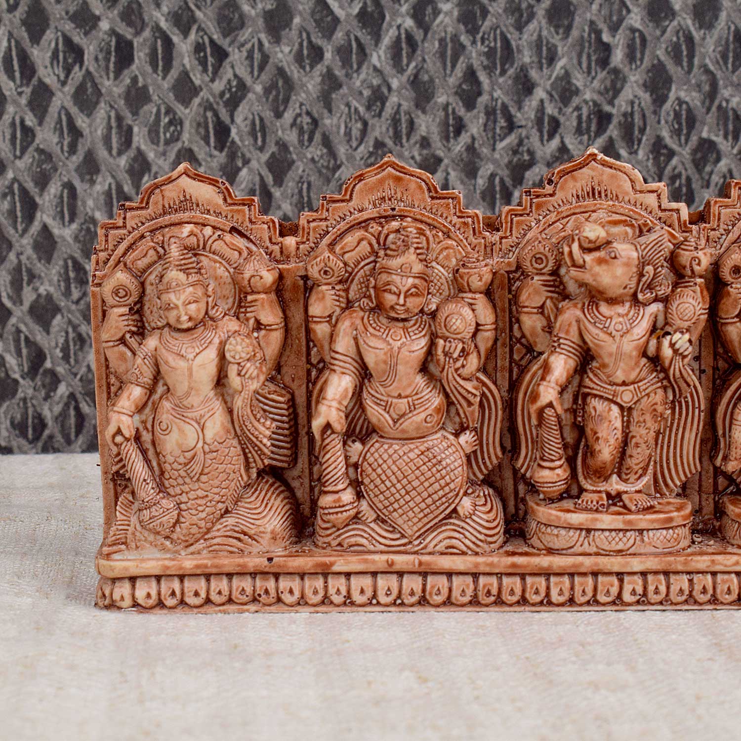 dasavatharam wall decor | lord vishnu avatars | wooden vishnu art | ten incarnations of vishnu | hindu wall decor | spiritual wood carving | vishnu wooden panel | pooja room decor | handcrafted hindu idols | divine home decor