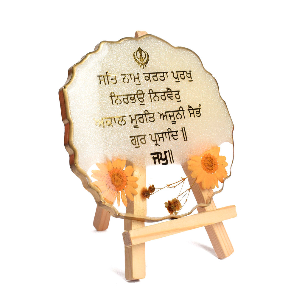 Ik Onkar mantra frame | decorative Sikh mantra frame | epoxy white mantra frame | spiritual home décor | Ik Onkar table frame | religious mantra frame | epoxy frame with stand | Ik Onkar gift item | Sikh décor frame |