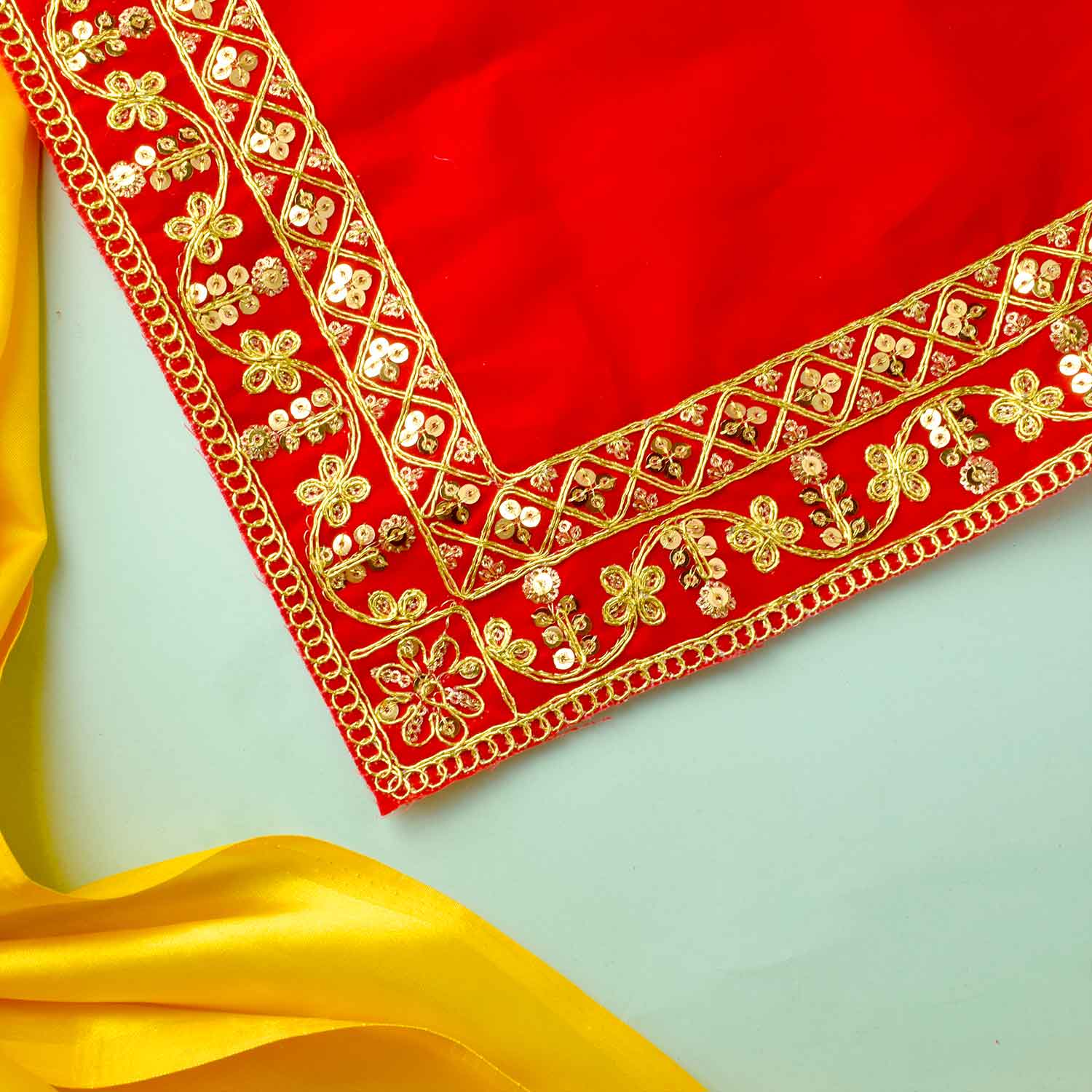 Size and Craftsmanship: 16 x 24 Inch Size, Made from High-Quality Velvet with Designer Border and Golden Lace all over the Border