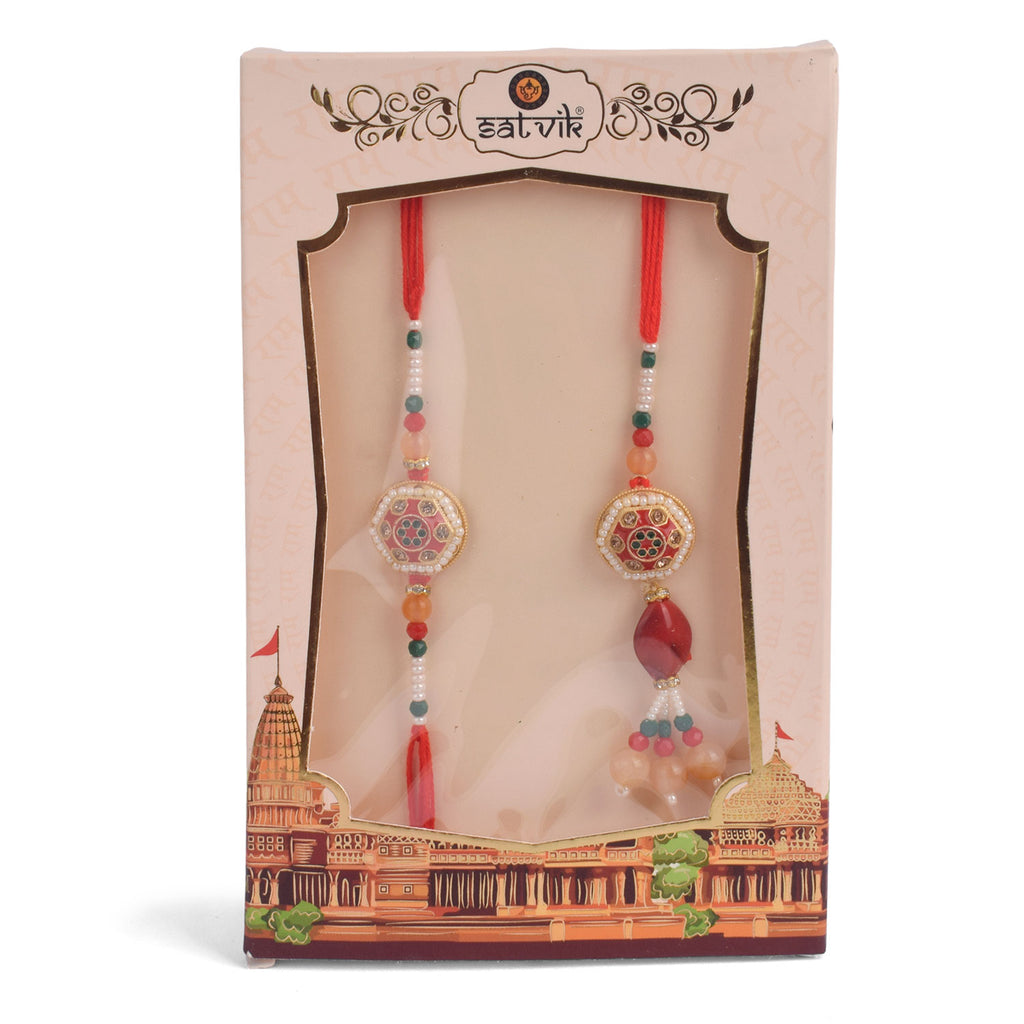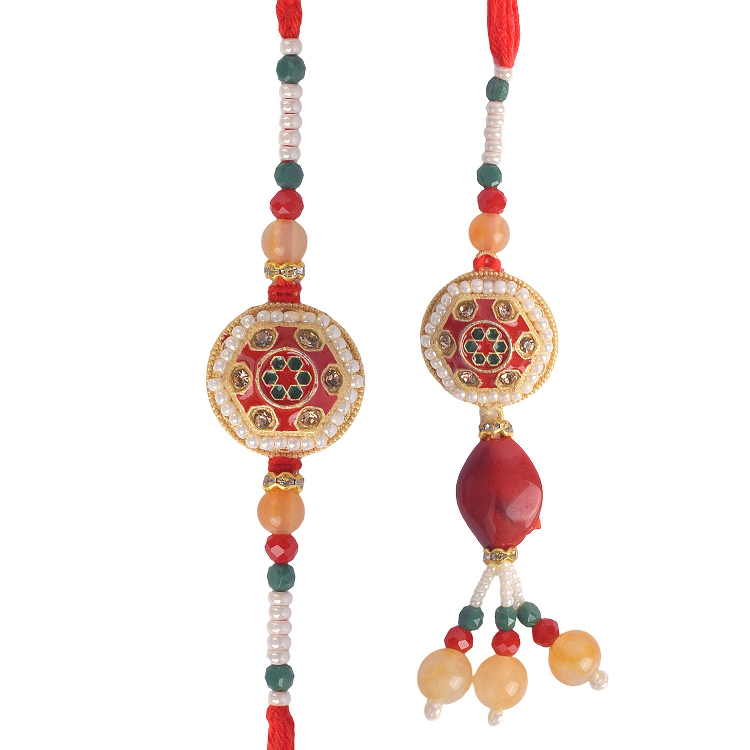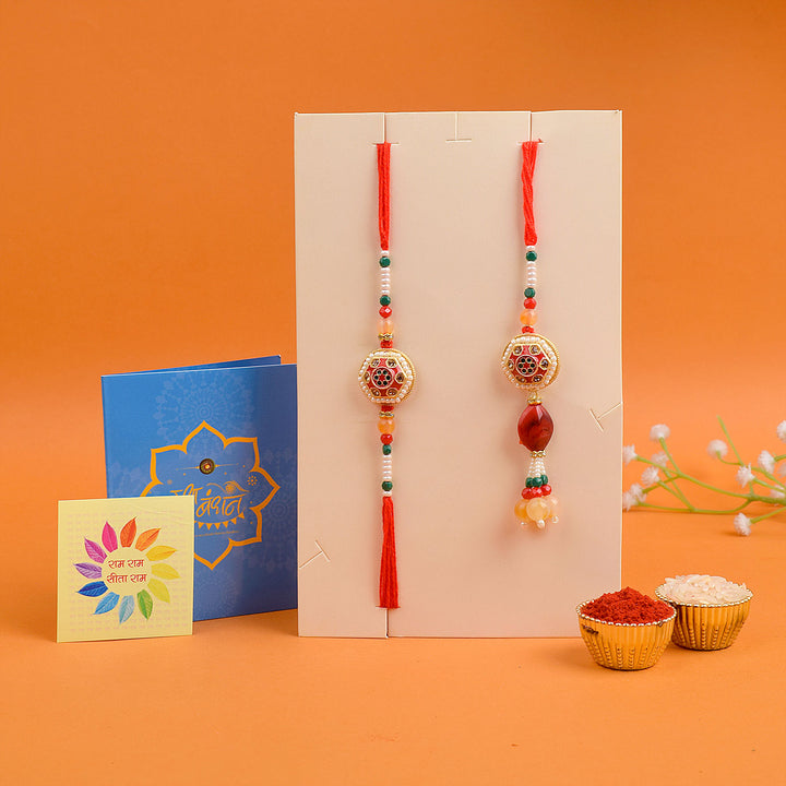 • Package: 1 Men Rakhi, 1 Women Lumba Rakhi, Roli Chawal Pack, Ram & Sita Theme Stickers
