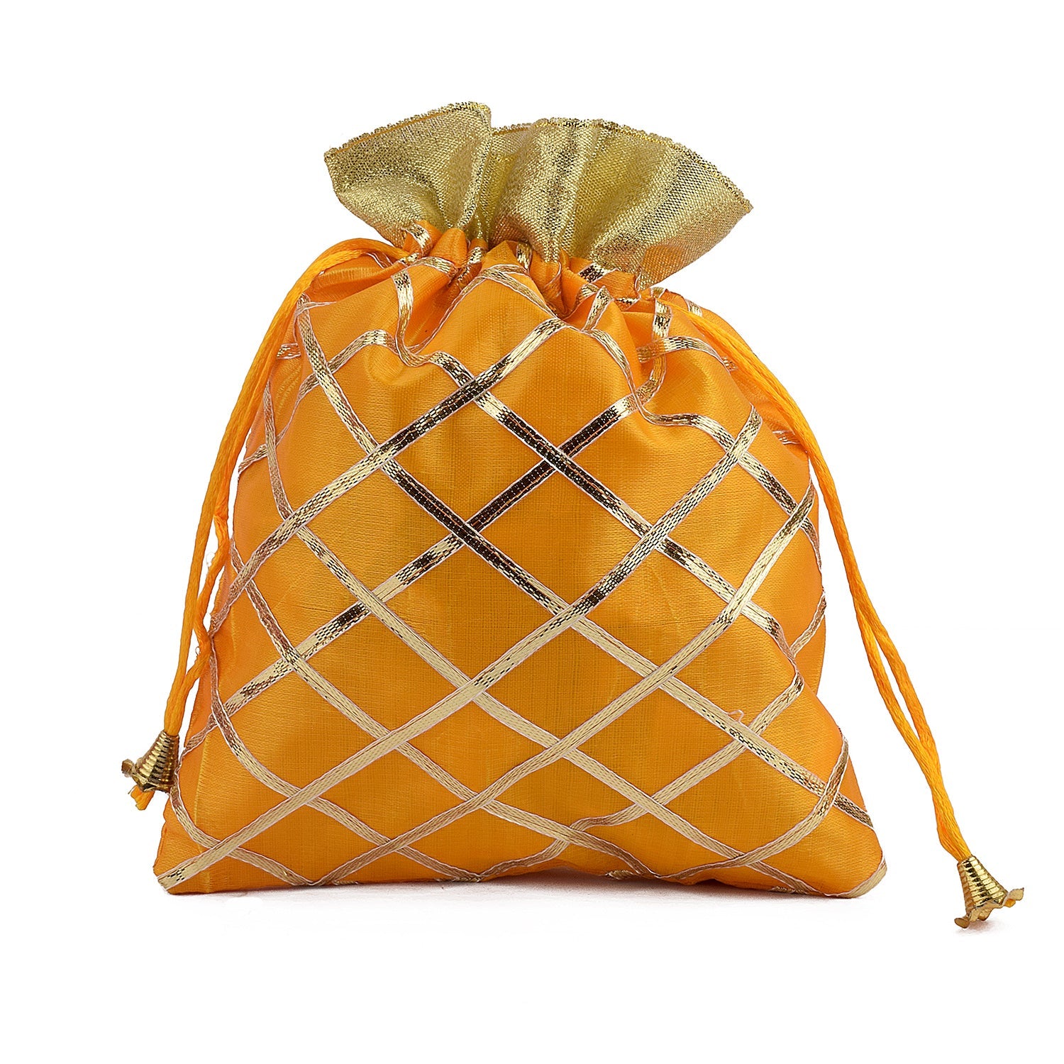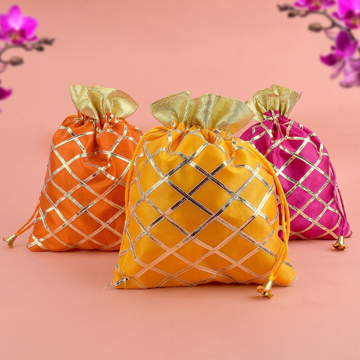 • Material: Made from High quality Organza Fabric with Golden Design All over the Pouch, Perfectly Stitched Wedding Pouch.