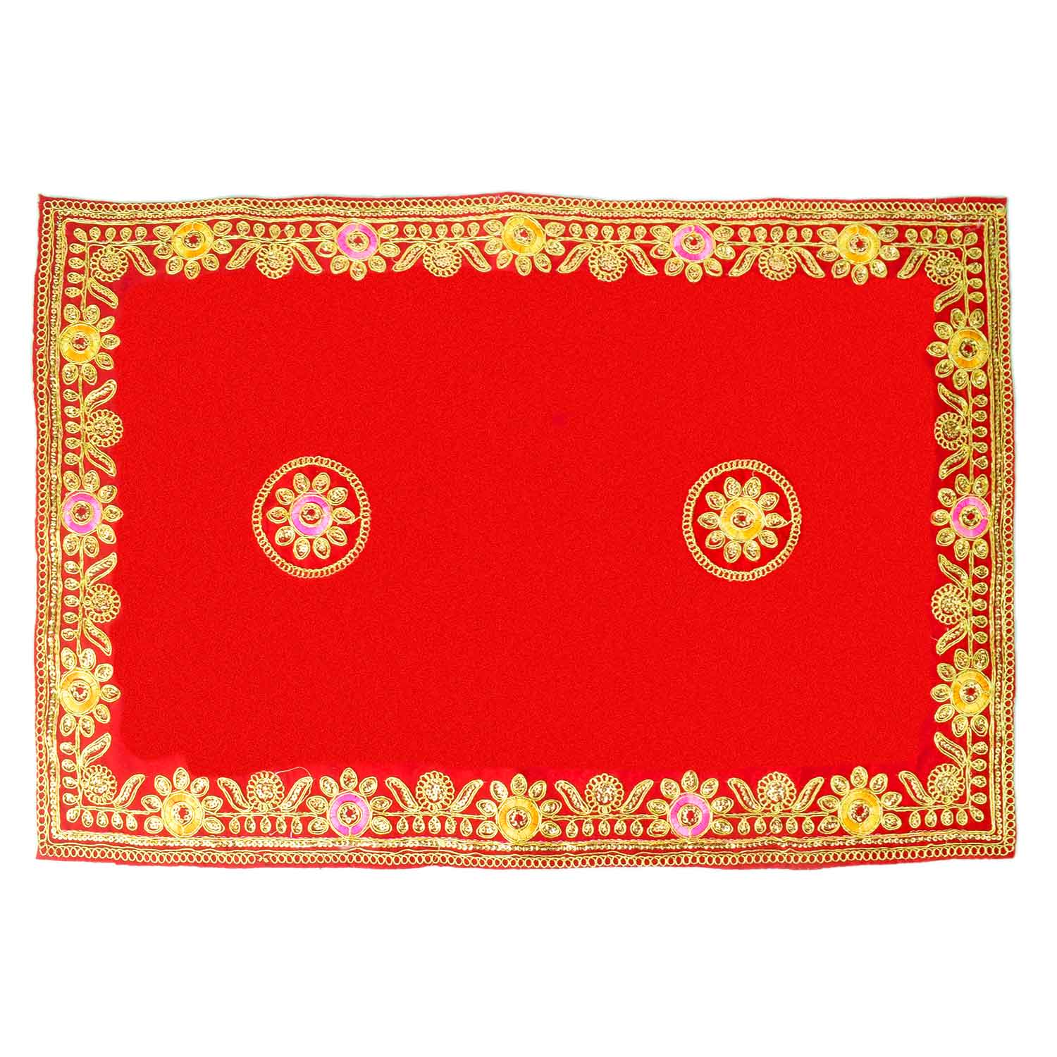 Flower Designer Aasan | Velvet Pooja Mat Set | Flower Design Aasan | Decorative Velvet Aasan | Pooja Mat Pack of 4 | 16x24 Inch Asan | Designer Aasan with Lace | Mandir Aasan Set | Velvet Asan with Golden Lace | Aasan for Temple Decoration