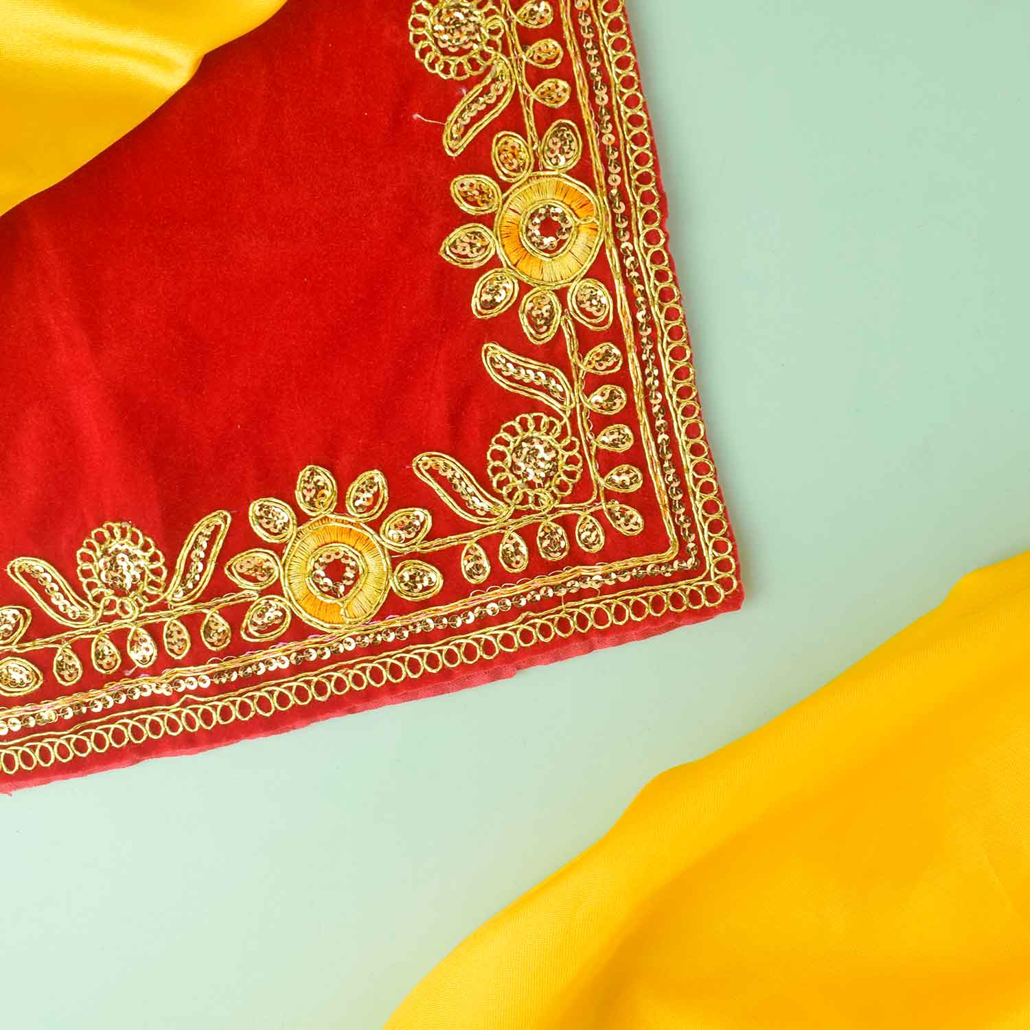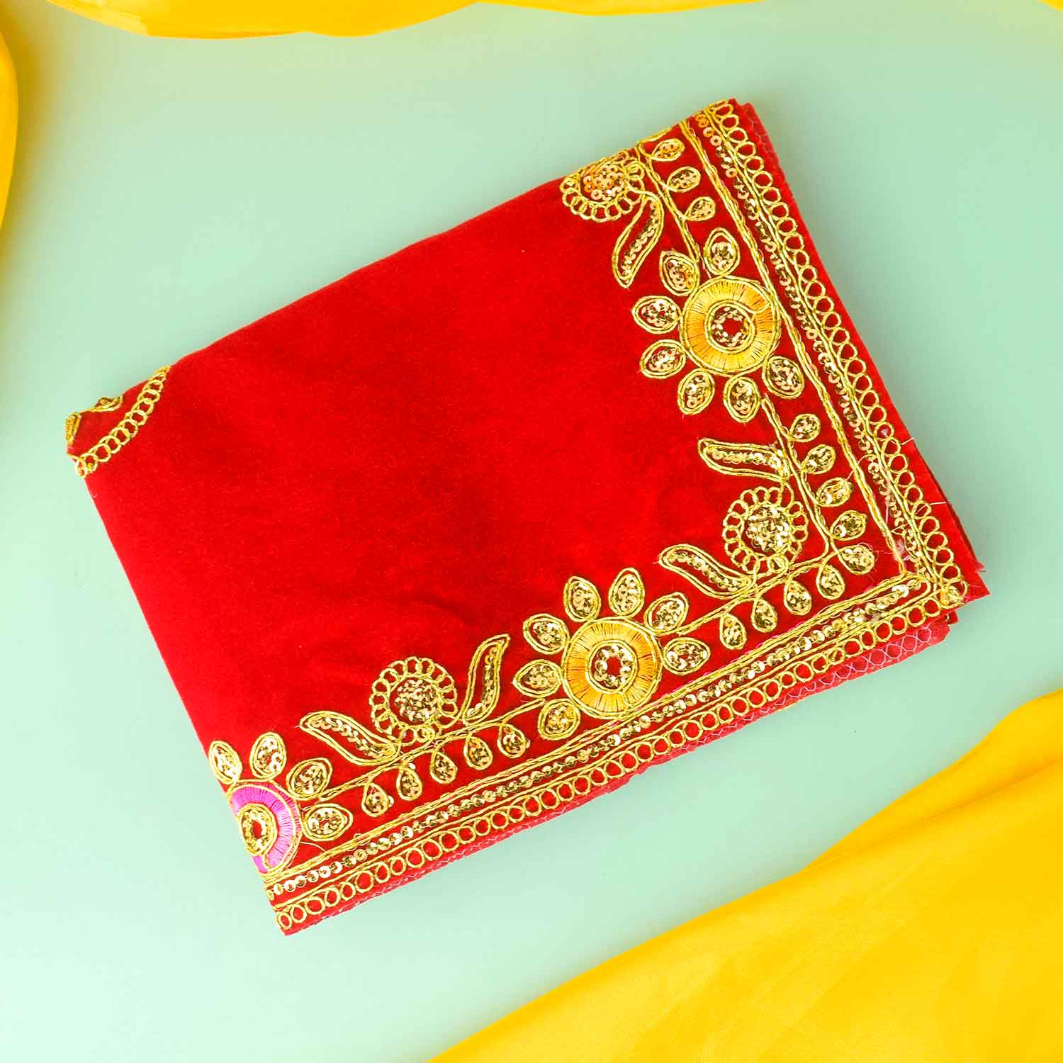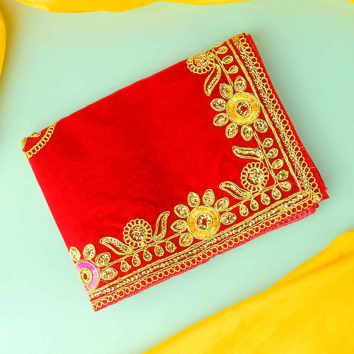 Size and Craftsmanship: 16 x 24 Inch Size, Made from Premium Quality Velvet with Flower Design and Golden Lace all over the Border