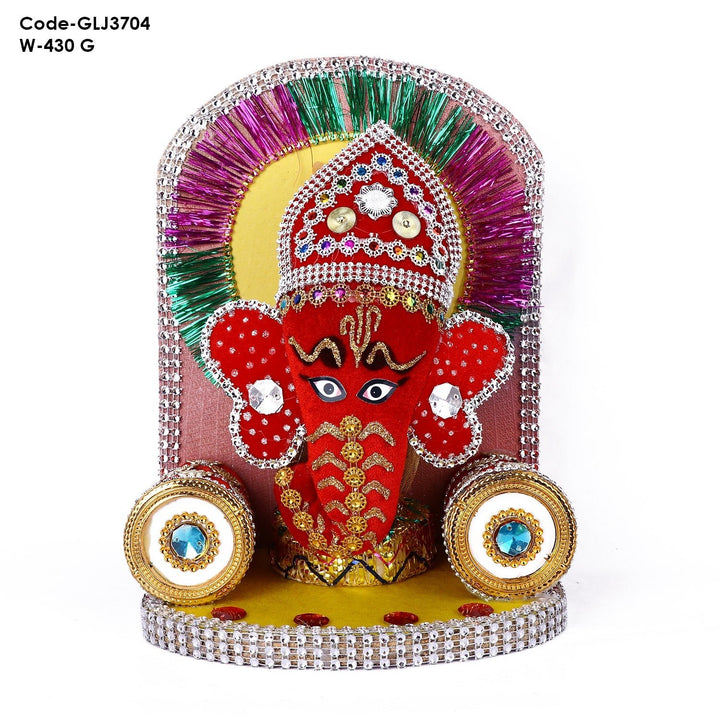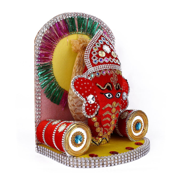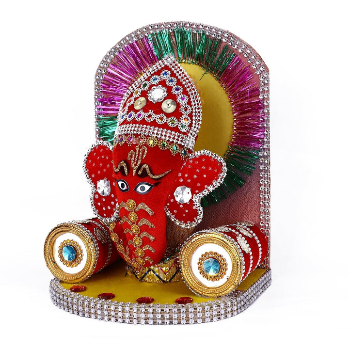 • Material: The Ganesha Singhasan Made with MDF material Handcrafted Floral Beads.