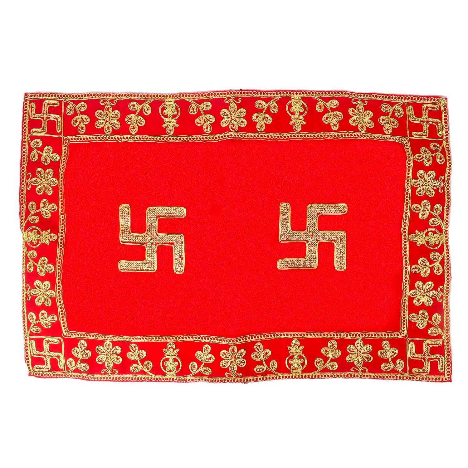 Heavy Design Aasan | Velvet Pooja Mat Set | Designer Puja Aasan | Aasan 15x23 Pack of 4 | Chowki Cover Cloth | Temple Cloth Set | Puja Aasan Velvet | Decorative Mandir Aasan | Red Velvet Asan with Lace | Religious Mat for Temple