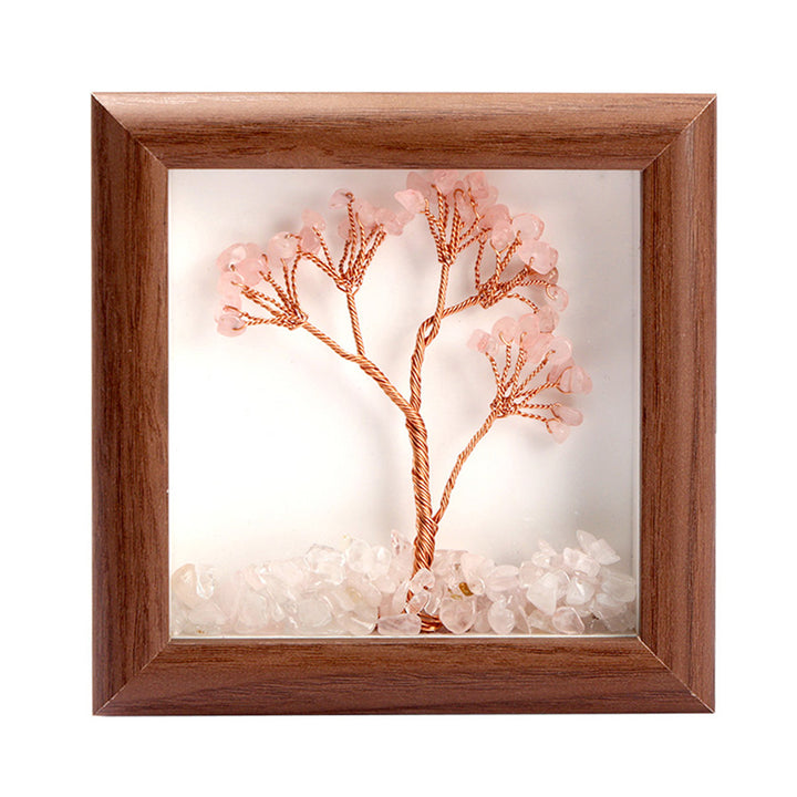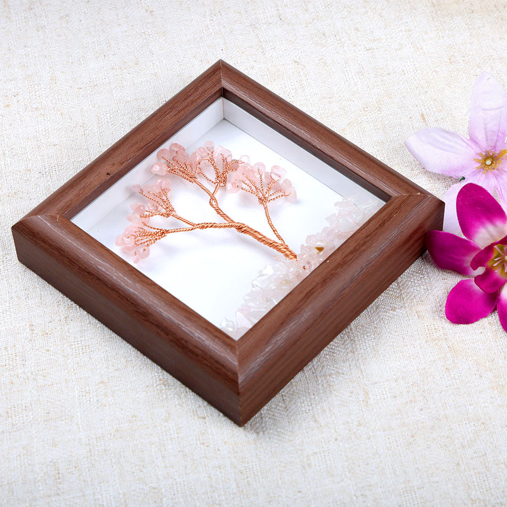 Rose Quartz Tree with Frame Decorative Spiritual Piece