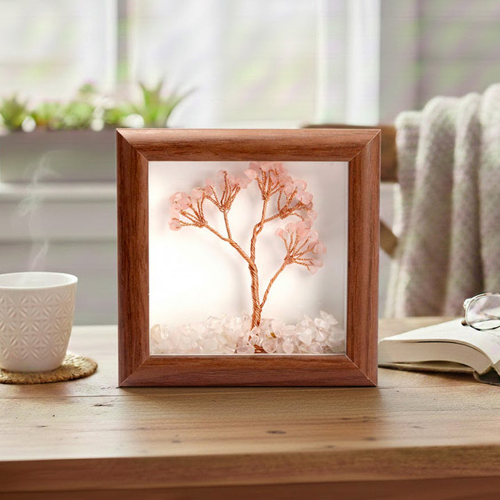 Rose Quartz Tree Frame | Rose Quartz Crystal Tree with Frame | Love Healing Stone Decor | Emotional Healing Crystal Frame | Spiritual Home Decor | Energy Healing Frame