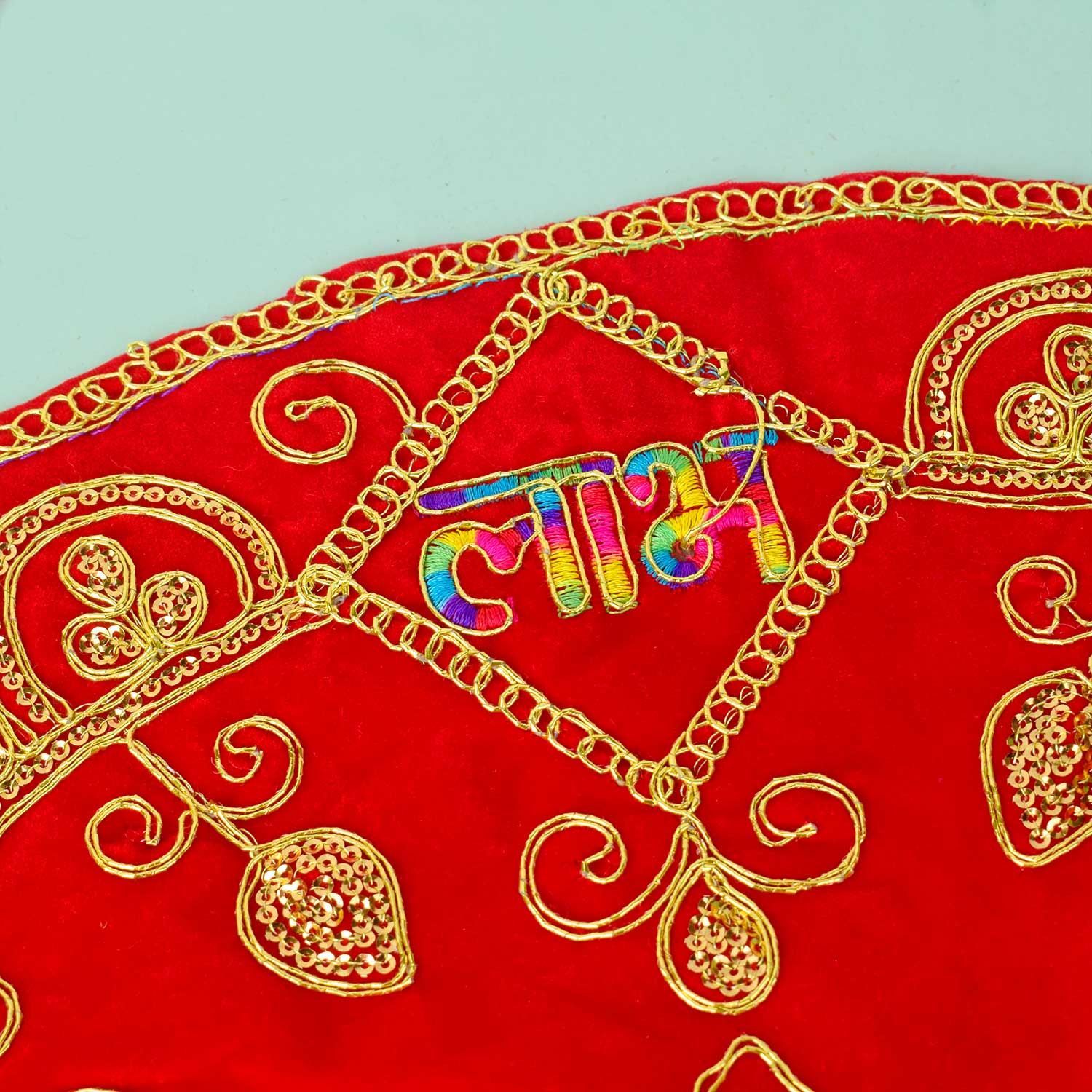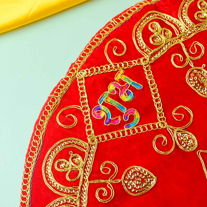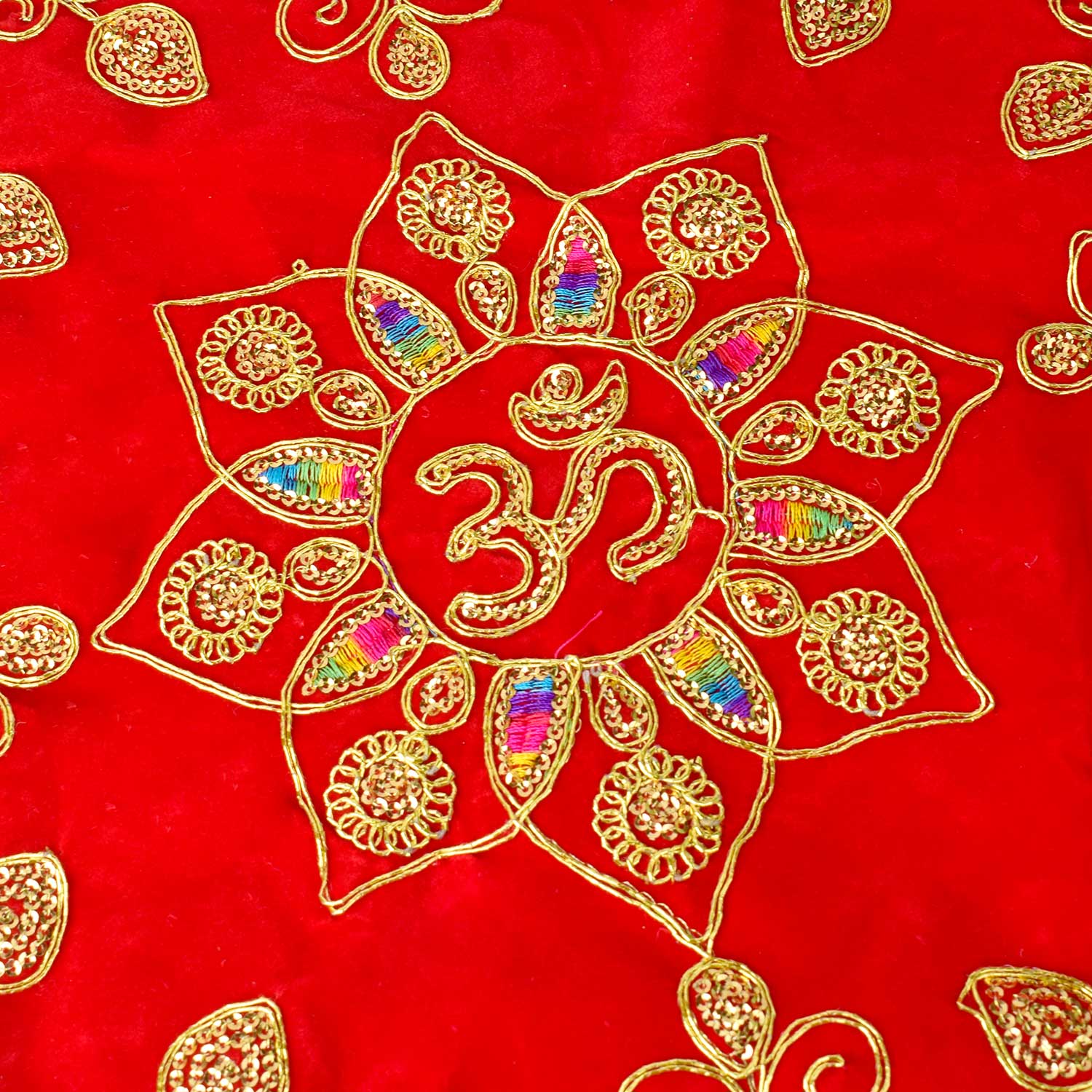 Round Shape Asan | Velvet Pooja Cloth | Large Round Pooja Mat | Asan for Deity | Round Chowki Cover | Red Pooja Mat | Velvet Aasan for Puja | Round Mat for Temple | Decorative Puja Aasan | Mandir Cloth Round