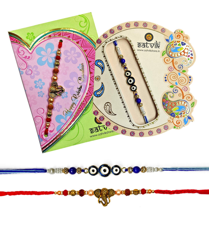 Satvik Combo Of Evil Eye and Elephant Face Rakhi – Satvikworld.com